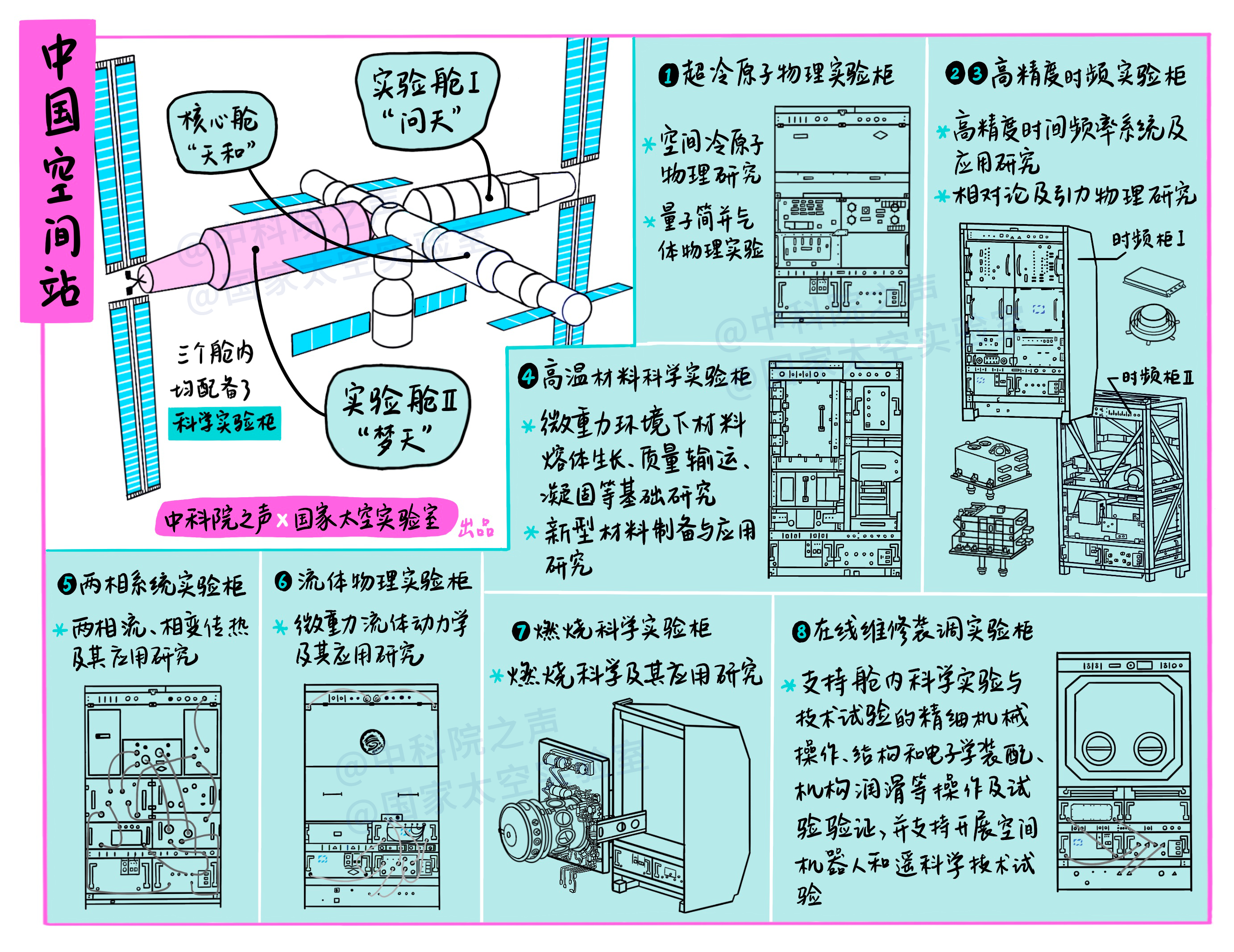 今日(3日)上午,中國空間站夢天實驗艙順利完成轉位,標誌着中國空間站「T」字基本構型在軌組裝完成,向着建成空間站的目標邁出了關鍵一步。同時,「國家太空實驗室」也在線上亮相,在社交平台瞬間引發近萬點讚轉發。「國家太空實驗室」並發布了一系列科普視頻和手繪科普圖,向公眾詳細介紹這個空間科學的「夢工廠」。