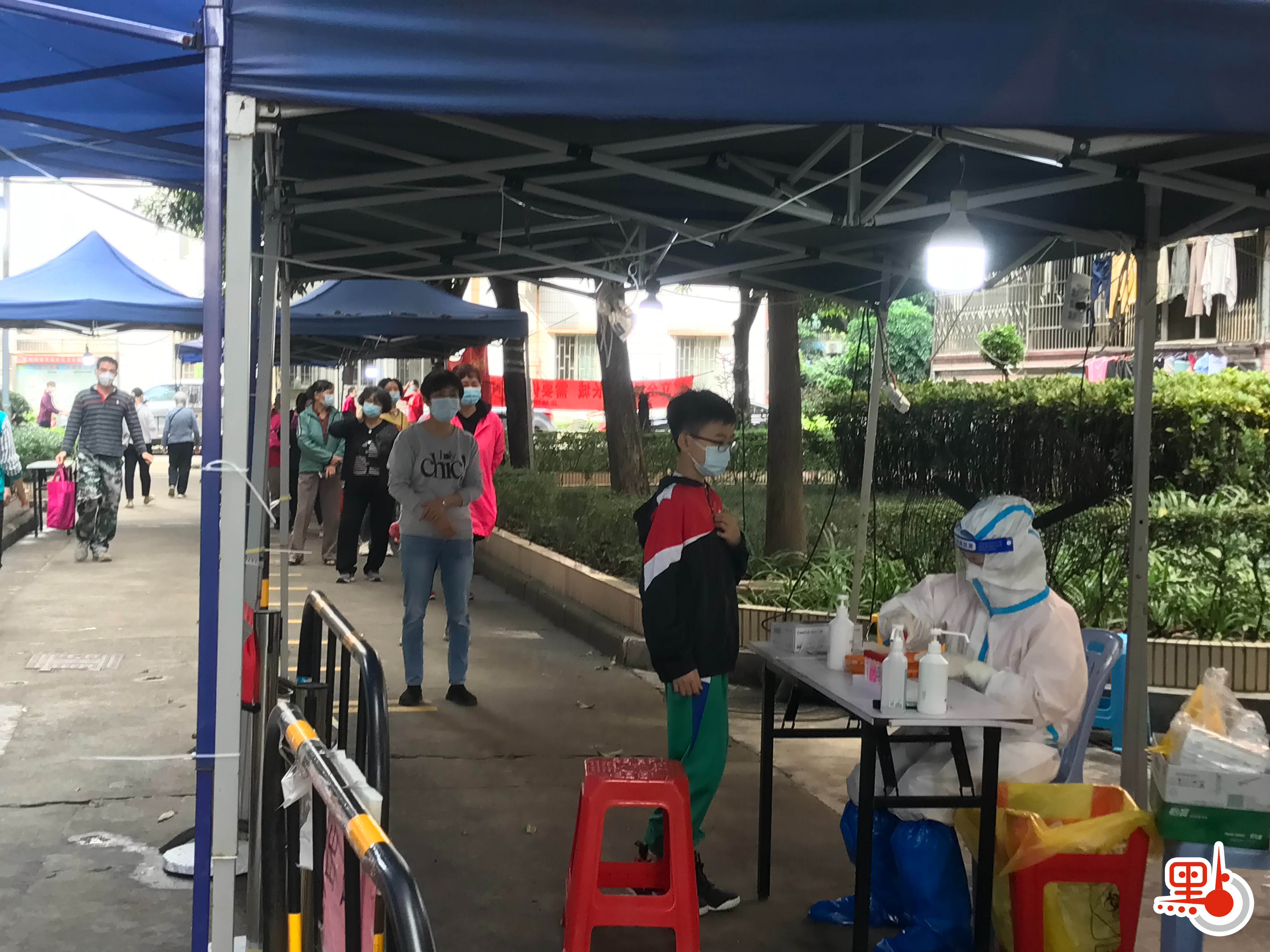 在荔灣區花地街道,除便利店、生鮮連鎖店、麵包店等滿足日常生活需求的商店外,其他經營性場所、商店已暫停營業。不少市民前往菜市場採購肉菜,部分生鮮連鎖店貨架已經所剩無幾。當天,按照要求,荔灣區啟動新一輪全員核酸篩查。