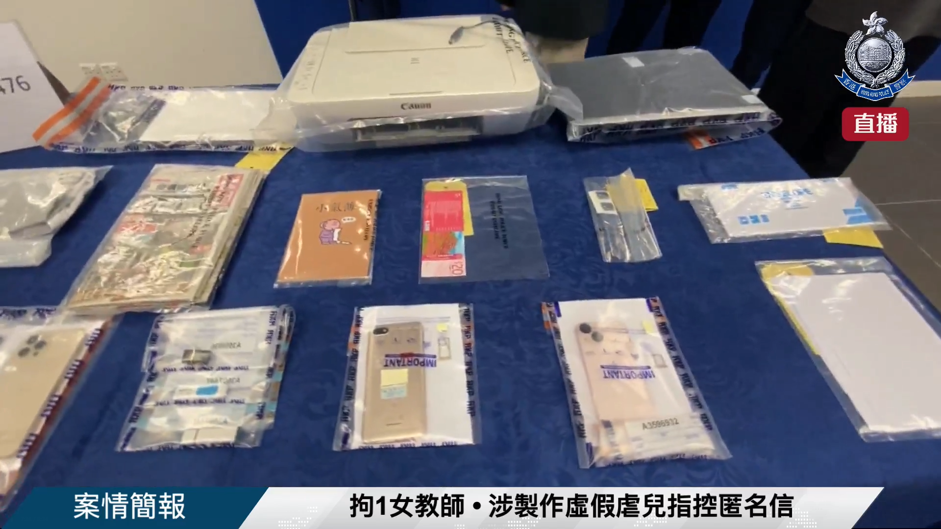 由於信件針對校方管理層及特定教職員,警方不排除有人因工作安排問題,對上司及同事不滿,因而製作匿名信捏造指控。經深入調查後,警方前日(7日)拘捕該校一名48歲姓唐女教師,並在疑犯的辦公室及住所,搜出製作匿名信的電腦、打印機及相關證物。據了解,被捕教師在該校任職10年,負責教音樂及語文課,她涉嫌自行偷拍及偷錄學校教學影片,繼而透過校方電腦盜取學生資料,製作並寄出有關匿名信。