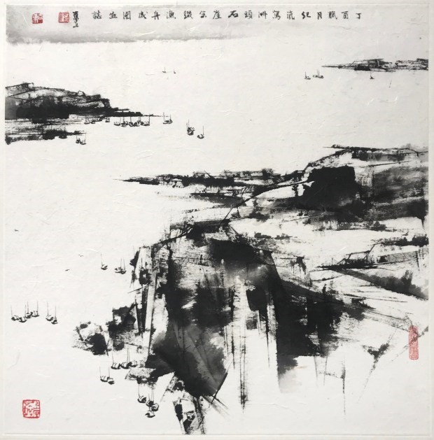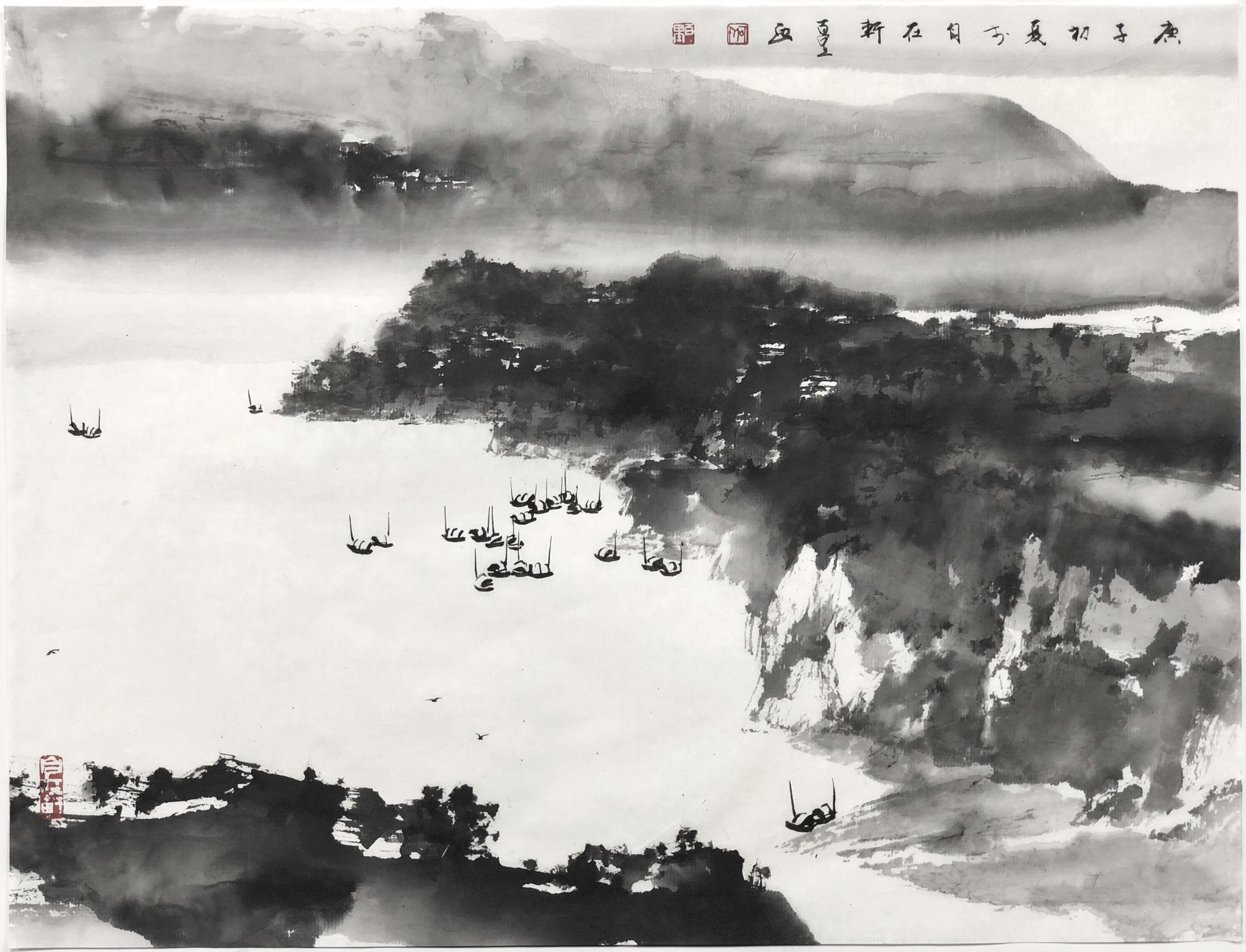 在上世紀追隨新水墨的浪潮中,何百里嘗試以中國傳統的書法技法入畫,寄意於筆,氣由筆生,創作出《百里輕舟》系列水墨小品,綿綿遠山點點漁舟,趣味橫生。此次展覽呈現四幅何氏的《百里輕舟》系列近作,讓觀者在回顧水墨氣韻一脈相承的同時,亦能體會更加深遠的香江意境。