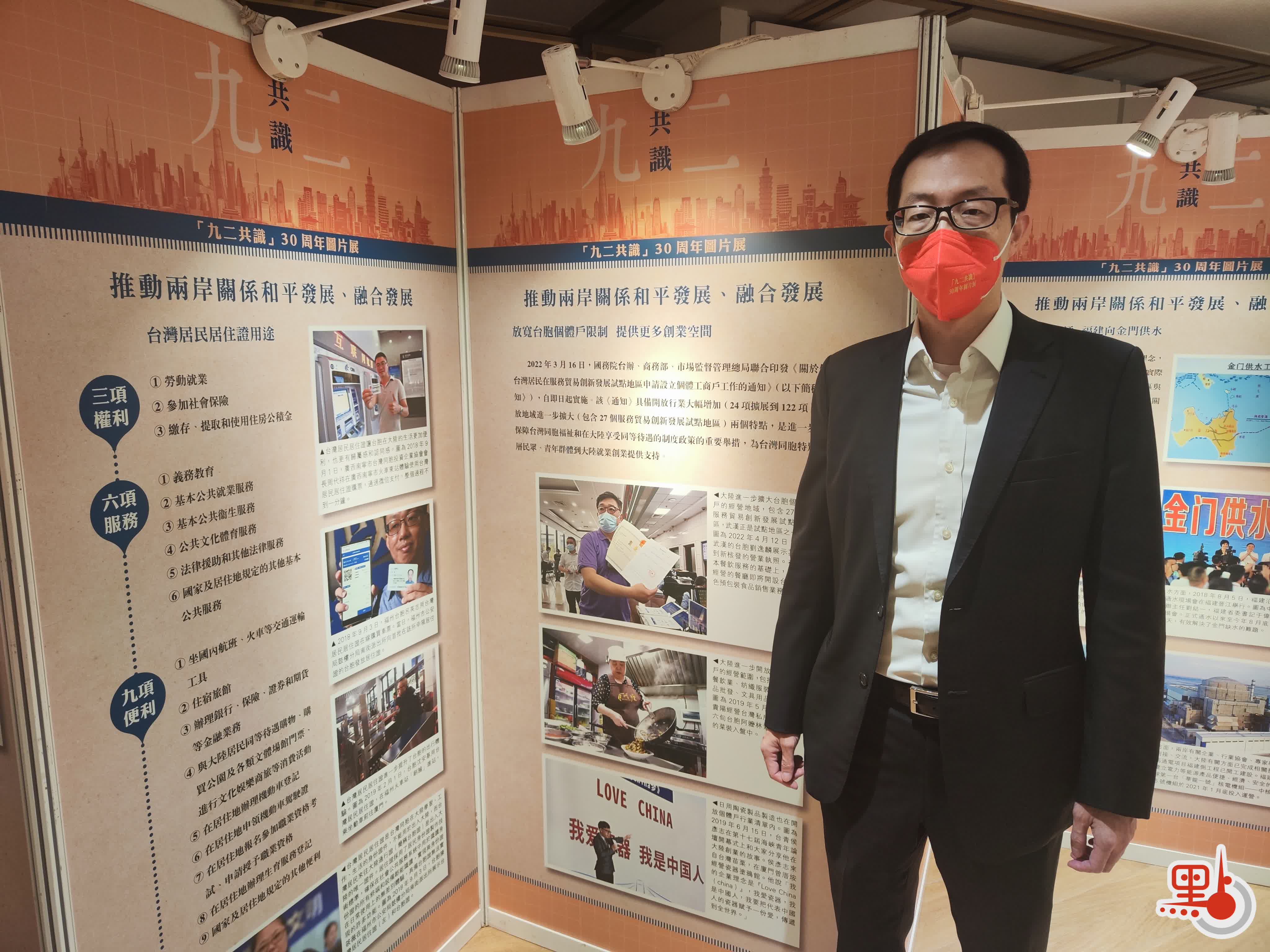 中國和平統一促進會香港總會常務副會長盧金榮表示,今次圖片展吸引了不少年輕人前來觀看,可以學習有關「九二共識」的知識,回顧這段歷史,了解到「九二共識」的核心要義是「海峽兩岸同屬一個中國,共同努力謀求國家統一」。祖國亦不斷推動兩岸關係和平發展、融合發展。他說,國家出台很多措施,便利台灣同胞在大陸的生活,台灣居民居住證有三項權利、六項服務、九項便利,讓台胞生活更加便利,也更有認同感和歸屬感。除此之外,祖國也放寬了台胞個體戶限制,提供更多創業空間。「我們與台灣同胞同根同源,希望能夠早日和平統一。」