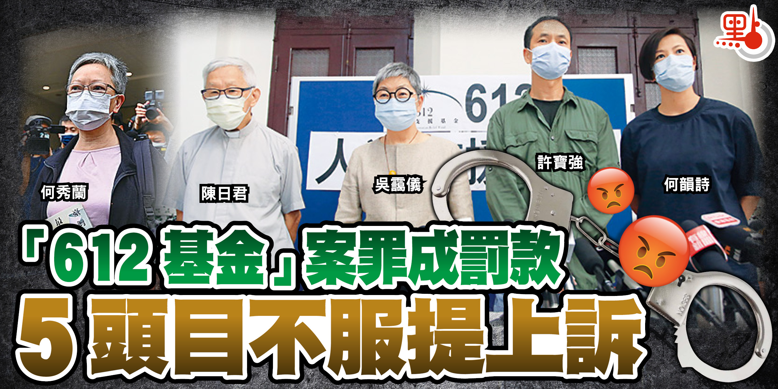 「612基金」案 罪成罰款 5頭目不服提上訴