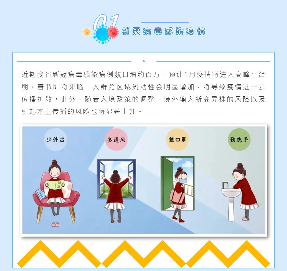 中心表示,近期浙江省新冠病毒感染病例數日增約百萬,預計1月疫情將進入高峰平台期。春節即將來臨,人群跨區域流動性會明顯增加,將導致疫情進一步傳播擴散。此外,隨着入境政策的調整,境外輸入新變異株的風險以及引起本土傳播的風險也將顯著上升。