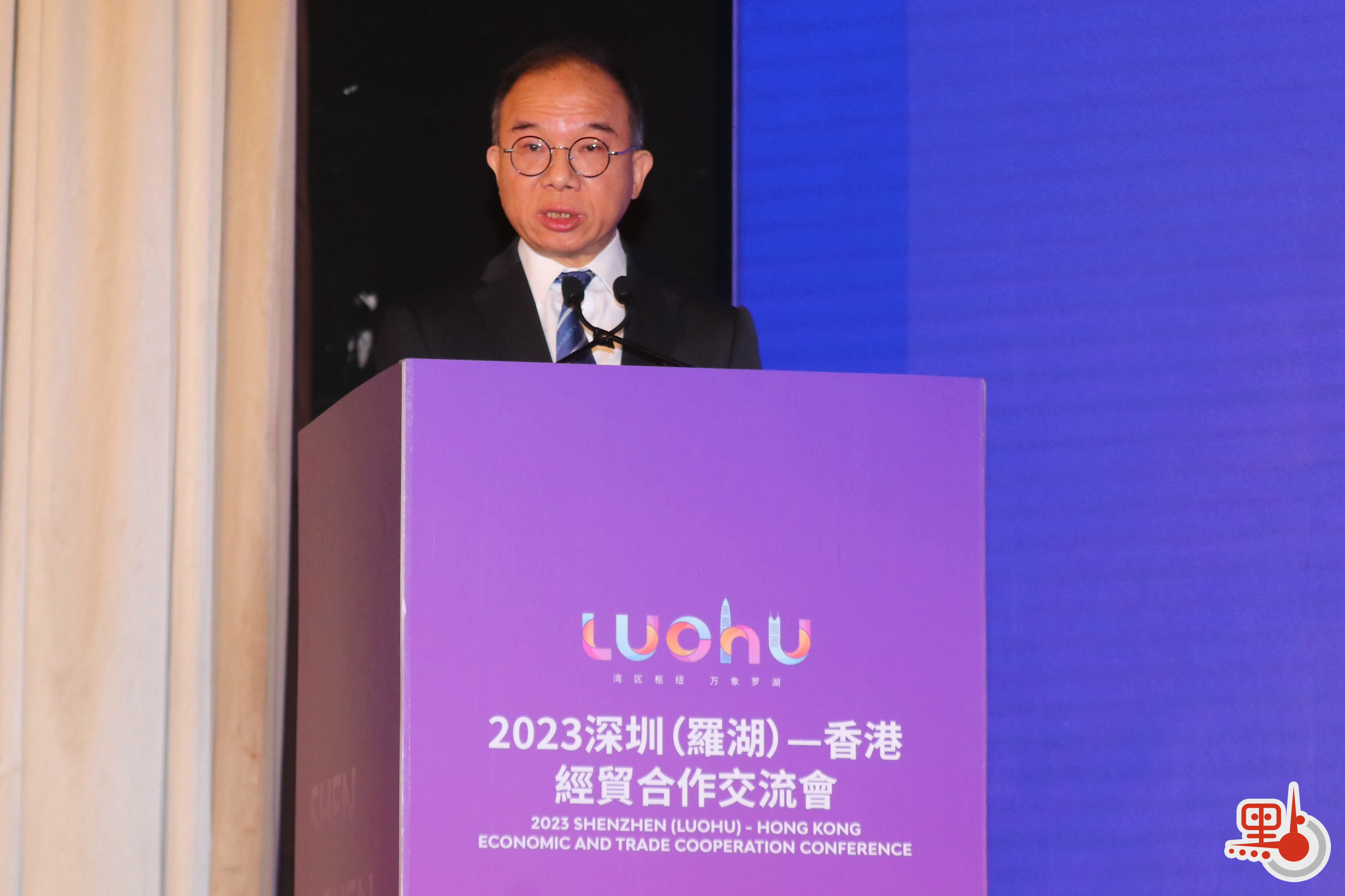 2023深圳(羅湖)-香港經貿交流會今日(17日)在港舉行,深圳市羅湖區人民政府區長范德繁、香港特區政府政制及內地事務局局長曾國衞、香港特區政府商務及經濟發展局局長丘應樺相繼致辭,介紹兩地經貿合作機會。