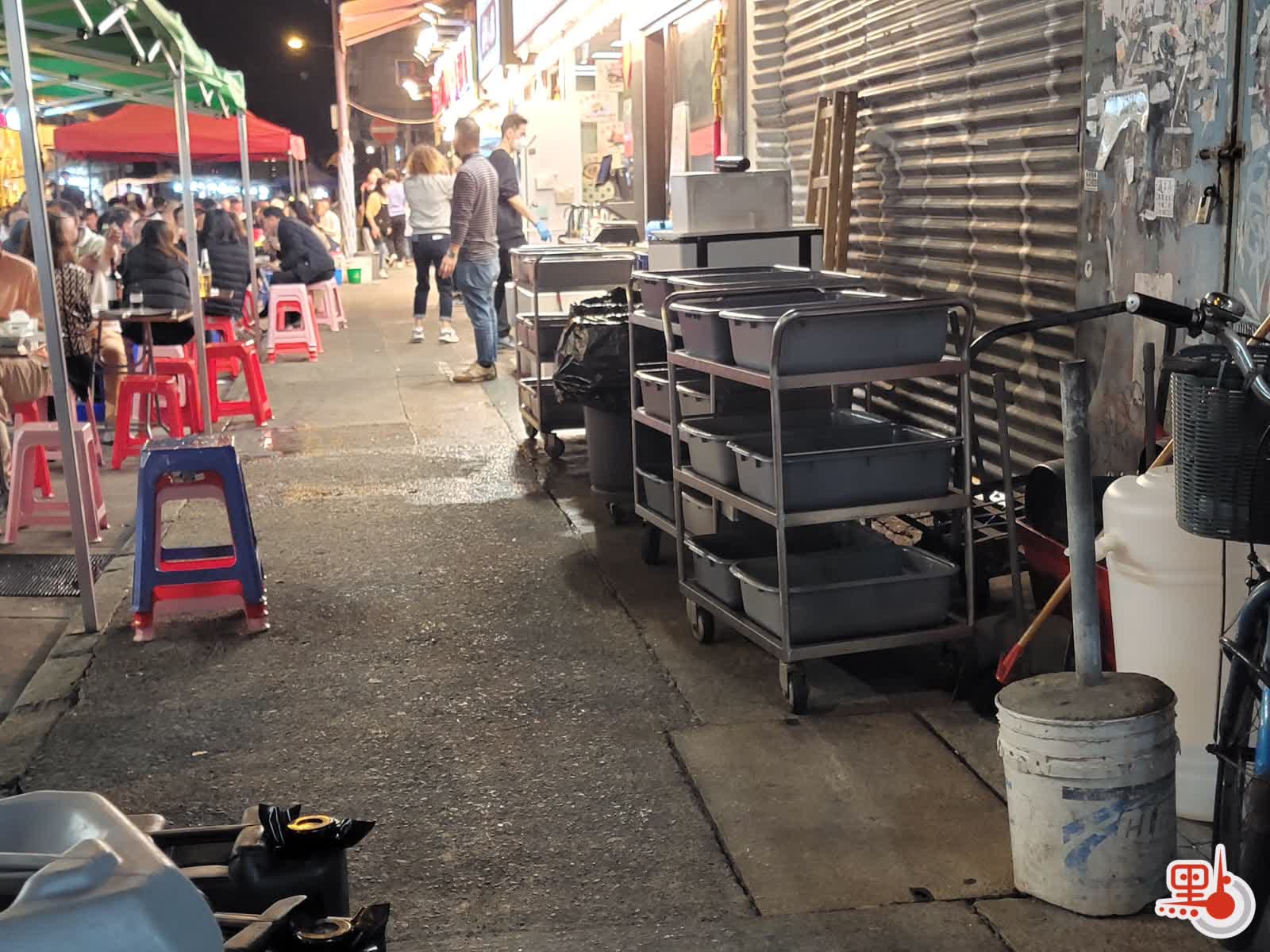 記者上星期兩次到廟街了解情況,入深後廟街多間食肆開始營業,並將帳篷、桌子及椅子放在地上的方格之內,路旁放有不少垃圾箱、手推車等雜物,用以放置食物殘渣垃圾,地下更留有大片污水,令人擔心附近的衞生安全,期間不少食客到場吃飯,明顯未有在意阻街的問題。