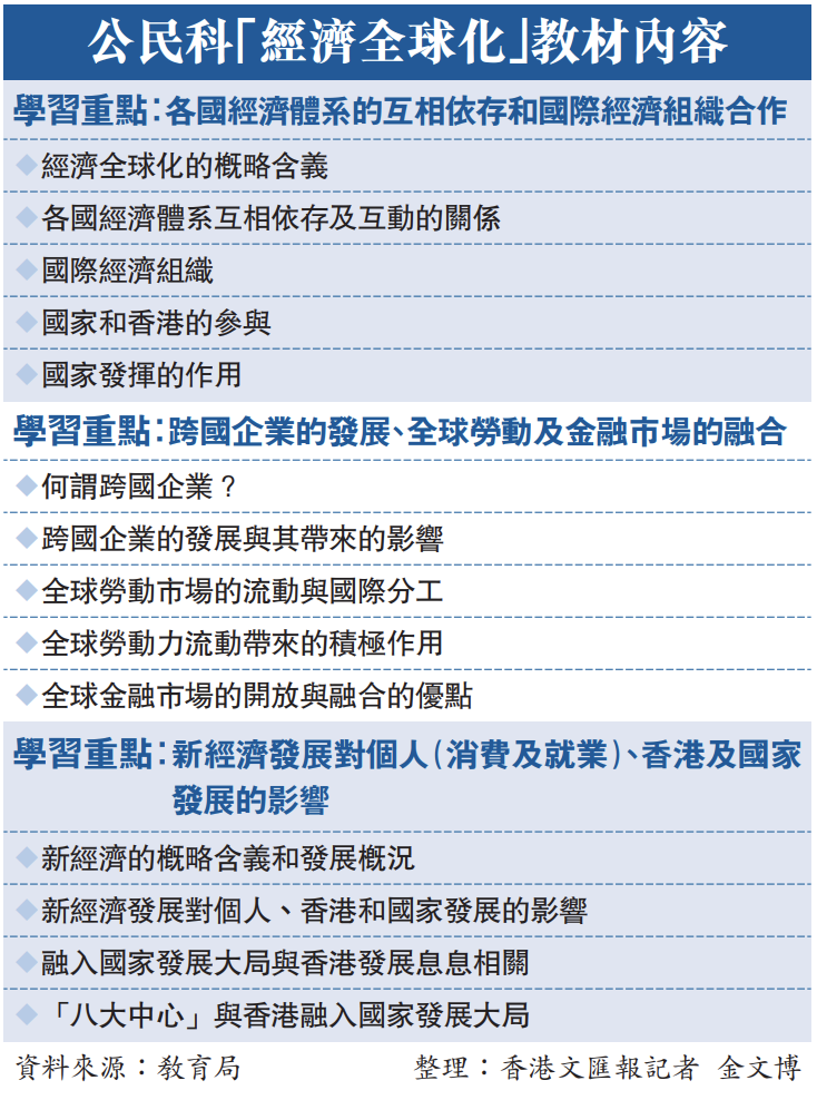 公民科發放首批「經濟全球化」教材 今年9月將在中六教授