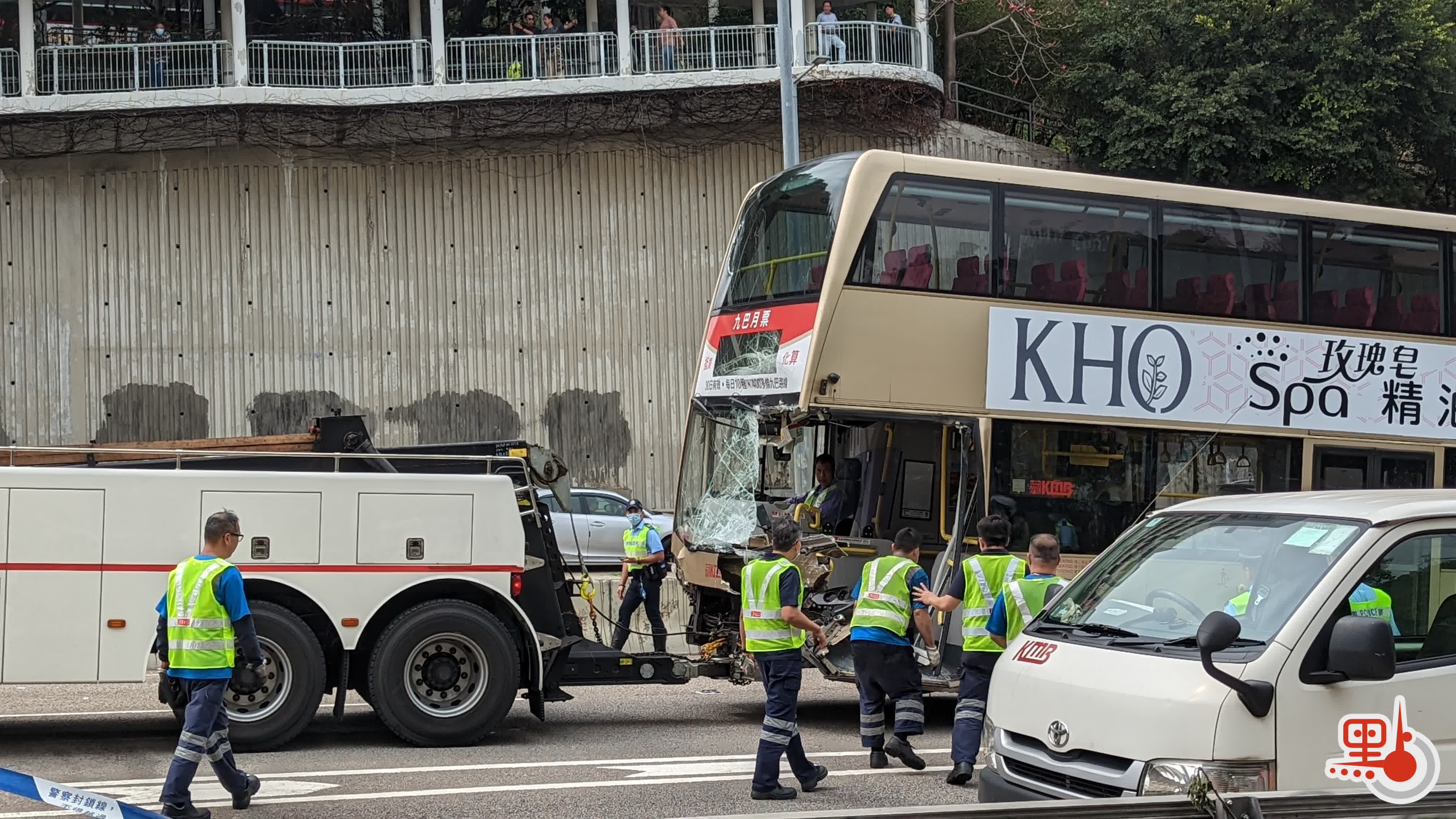 長沙灣呈祥道今早(20日)9時許,一輛九巴沿呈祥道往新界方向行駛,駛至清麗苑對開懷疑失控剷上路中石壆後傾側,車頭左側嚴重損毀,超過50名乘客一度被困在巴士上層,至少有44名乘客送院,車長一度昏迷後轉醒。到下午近2時,涉事巴士被移回路中並拖離。