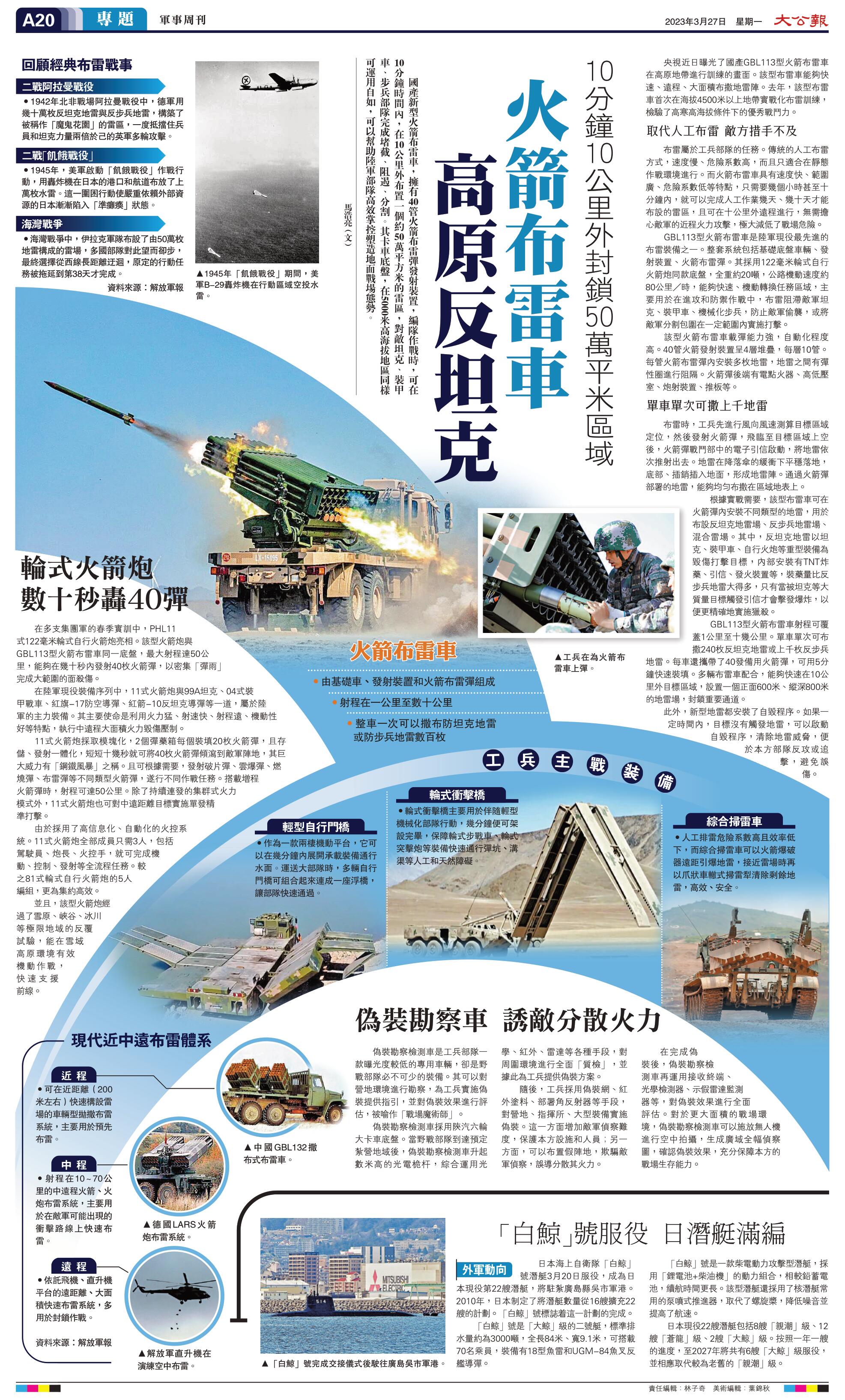 央視近日曝光了國產GBL113型火箭布雷車在高原地帶進行訓練的畫面。該型布雷車能夠快速、遠程、大面積布撒地雷陣。去年,該型布雷車首次在海拔4500米以上地帶實戰化布雷訓練,檢驗了高寒高海拔條件下的優秀戰鬥力。
