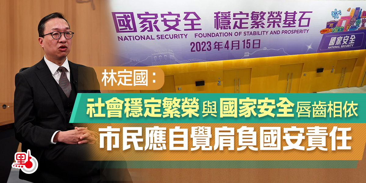 每年的4月15日是「全民國家安全教育日」,今年主題為「國家安全 穩定繁榮基石」。律政司司長林定國接受報章訪問表示,社會穩定繁榮與國家安全唇齒相依,市民應該抱持「居安思危」的底線思維,不應放鬆警覺。