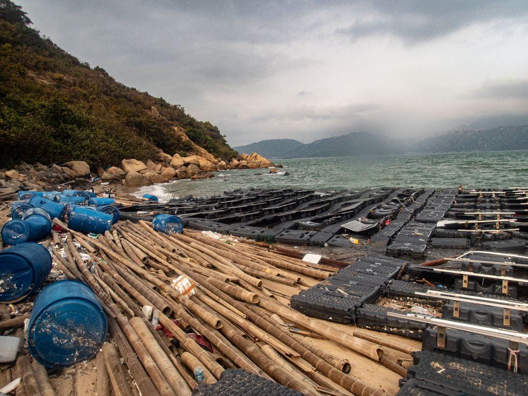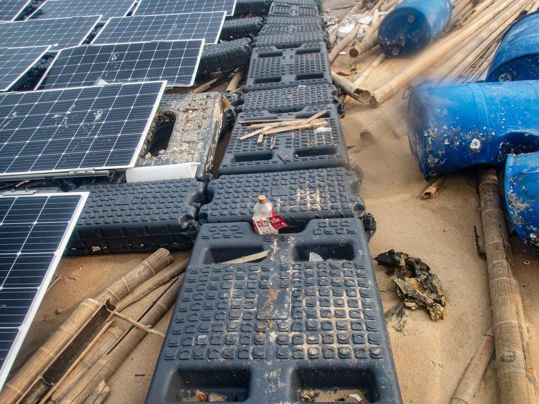 「海洋拾荒者Kitti」上傳多張相片,並質問「自私堆田區?」「太陽能板係一次性即棄?」懷疑有人在海中惡意棄置垃圾。從相片可見,現場約200塊太陽能板被繫於黑色膠板上,部分被衝上沙灘,部分仍在海上沉浮,附近還有大量竹枝及藍色膠桶。一些太陽能板出現彎曲變形及破損,有專家指間中有害化學物質浸在水中或污染海水,危害海洋生物。