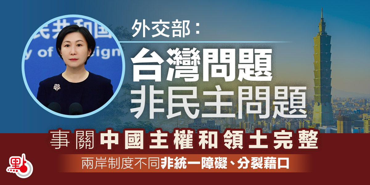 外交部:台灣問題非民主問題 制度不同非分裂藉口