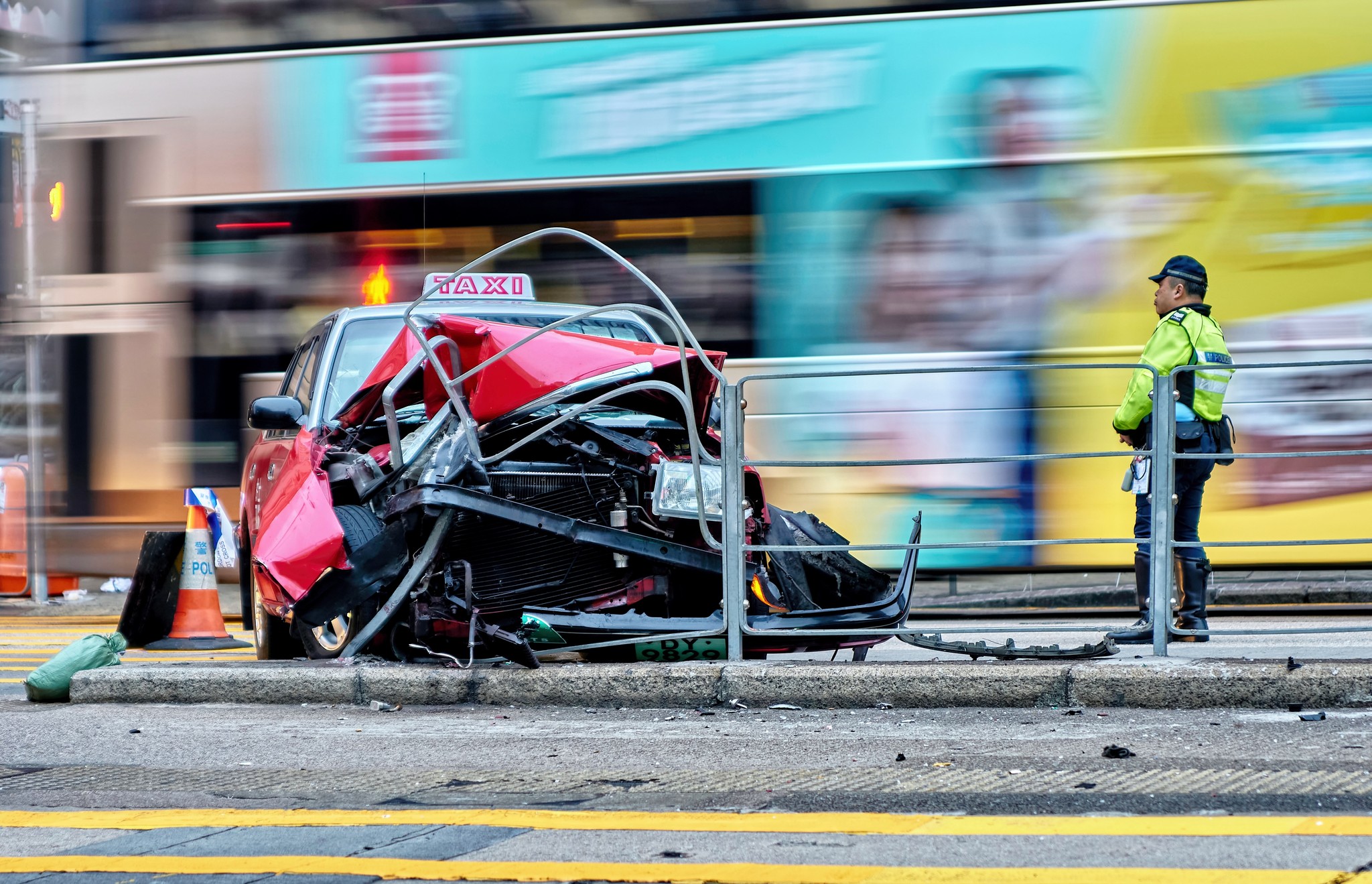 油麻地的士失控炒欄 七旬司機及女乘客受傷送院
