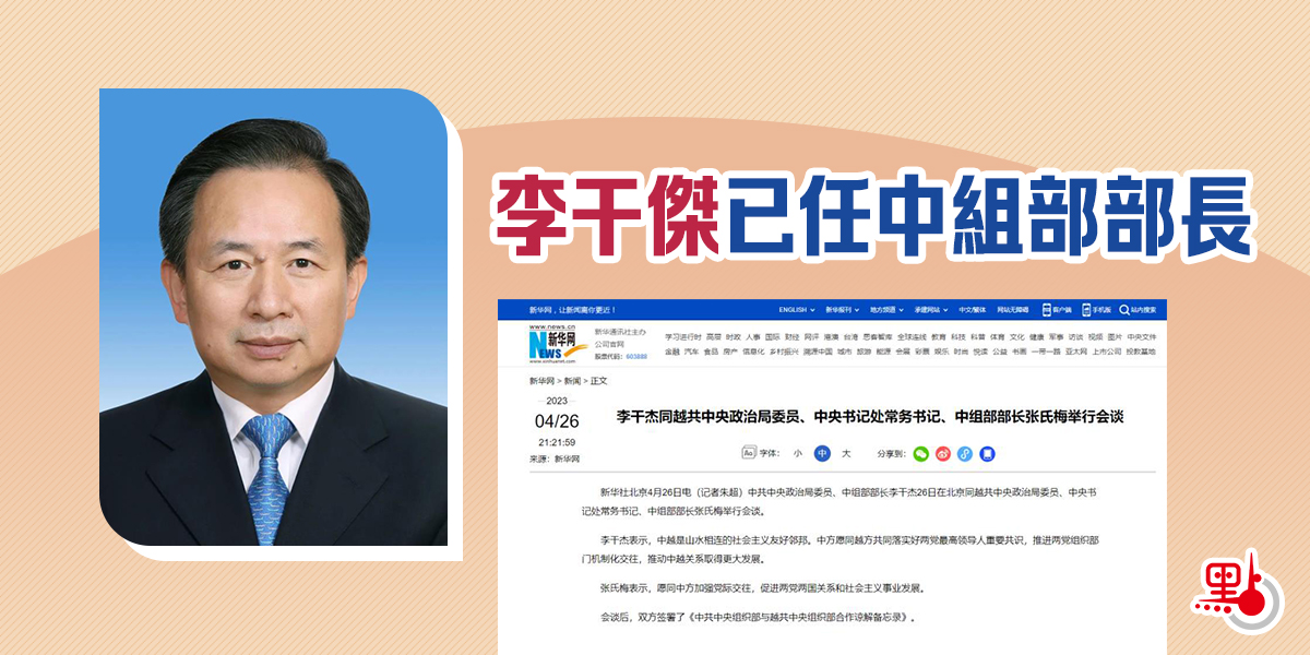 上述消息顯示,李干傑已擔任中組部部長。李干傑此前任中央政治局委員、中央書記處書記。此前擔任中央組織部部長的是陳希,他現任中央黨校(國家行政學院)校長(院長)。