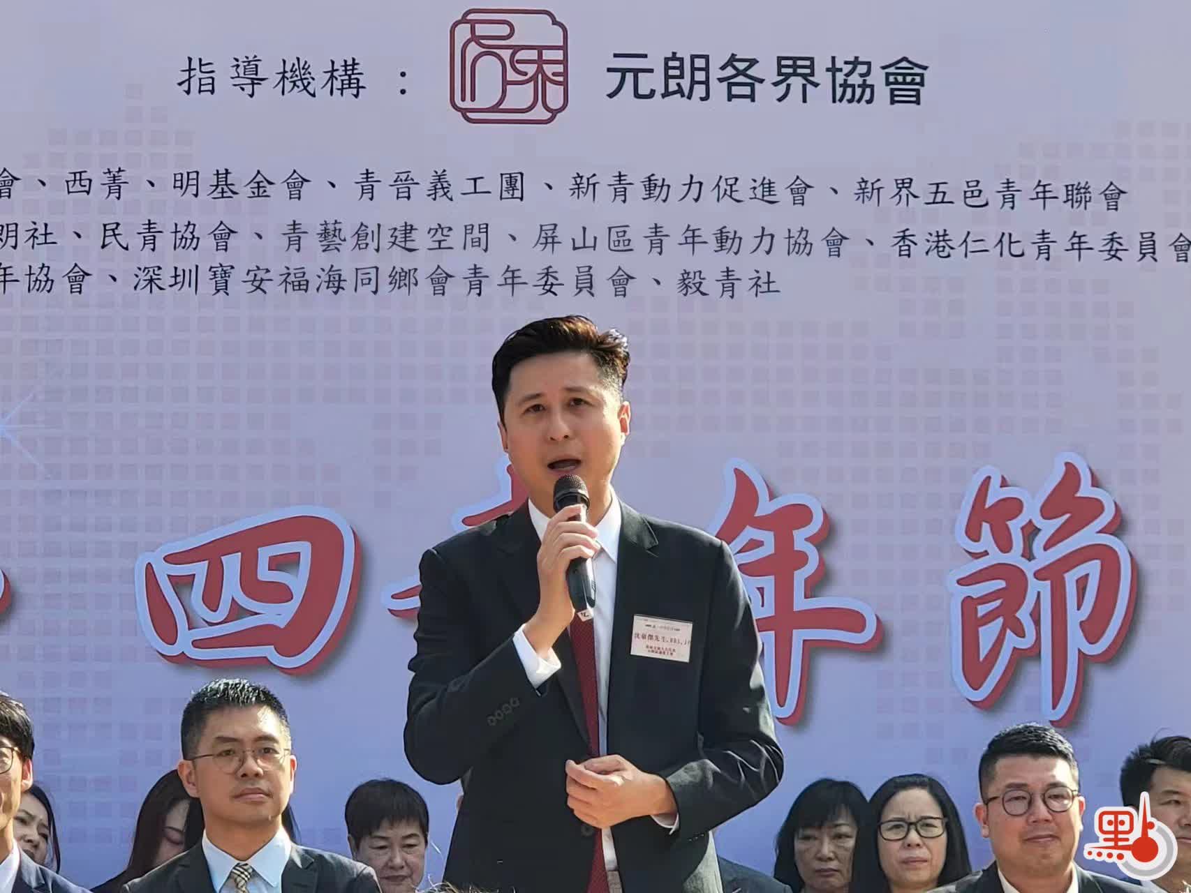 元創青年主辦「元朗區五‧四青年節升旗禮」活動今日早上在元朗天水圍銀座廣場舉行,元朗民政事務專員胡天祐、港區全國人大代表沈豪傑、全國政協委員梁志祥、立法會議員劉國勳、何俊賢、陸頌雄等多名嘉賓出席,升旗儀式由香港青少年軍總會派出升旗隊協助。元朗公立中學校友會鄧兆棠中學、佛教茂峰法師紀念中學、香港管理專業協會羅桂祥中學、賽馬會萬鈞毅智書院、錦田公立蒙養學校、香港普通話研習社科技創意小學、獅子會何德心小學、元朗商會幼稚園多間學校參與活動,超過100名中、小、幼學生出席現場。
