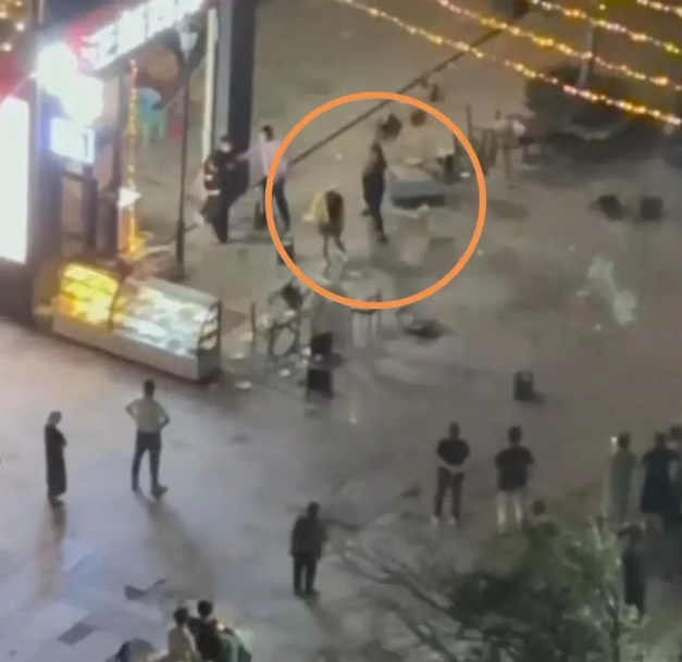 據報道,夜幕中,一家雞排店門前多人發生衝突。過程中,一男子掄起地面的一個黑色長方體硬物,砸向一黃衣女子頭部,黃衣女子倒地不再動彈,其間有人企圖將其從地面拉起無果。該視頻內配發的文字稱,事發於鄭州龍安社區二號院。