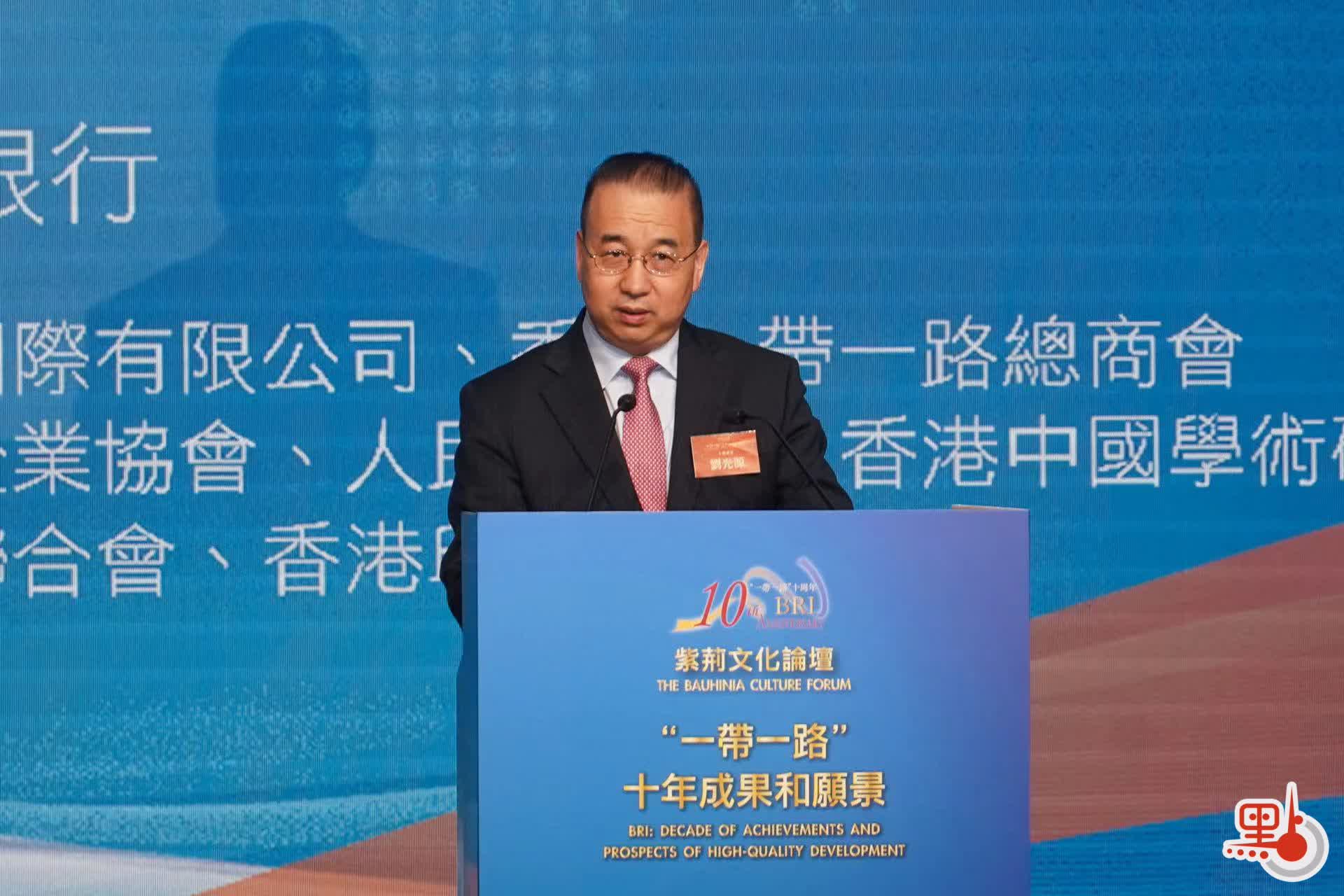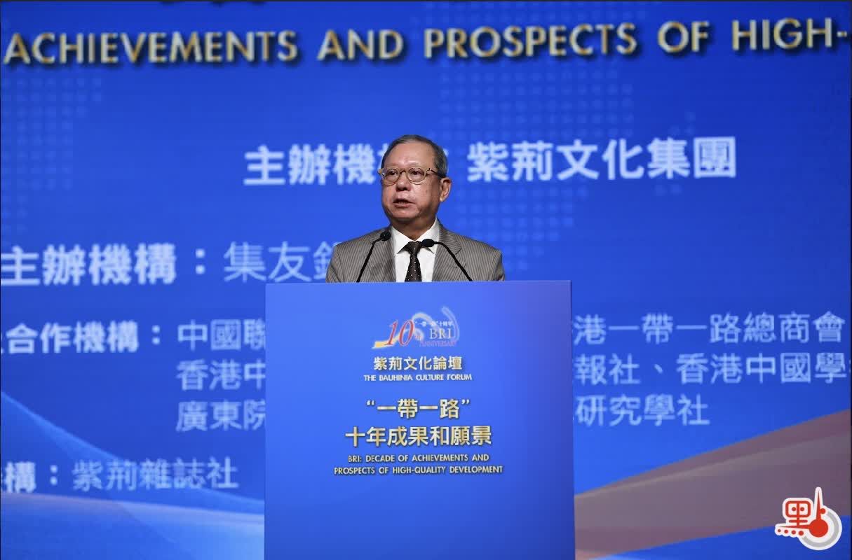 劉光源致辭時表示,隨着「六廊六路多國多港」架構基本成形,一大批務實合作項目扎實推進,共建「一帶一路」持續彰顯韌性與活力,為世界經濟發展引入源源「活水」。2013至2022年,中國與沿線國家貨物貿易額年均增長8%,雙向投資累計突破2700億美元。當今全球性挑戰層出不窮。與此同時,外交公署始終踐行外交惠港,擴大對外交往合作,全方位參與「一帶一路」建設。