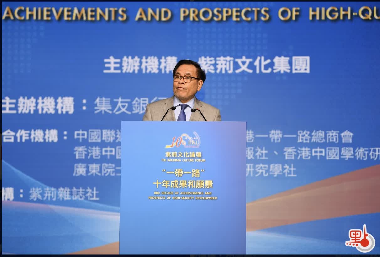 【點新聞報道】「一帶一路」十年成果和願景——紫荊文化論壇在今日(7日)舉行。論壇共邀請了來自美國、英國、哈薩克斯坦、阿聯酋、馬來西亞、塞爾維亞、印度尼西亞和中國香港等地的16位國際知名專家學者及政商領袖,現場回顧總結「一帶一路」十周年的成就和經驗。