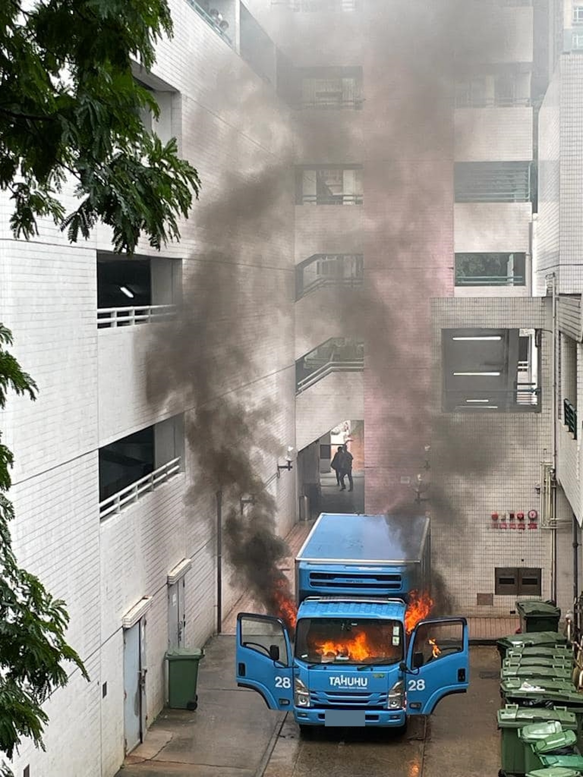 粉嶺貨車起火突傳爆炸巨響 黑煙席捲半空無人受傷