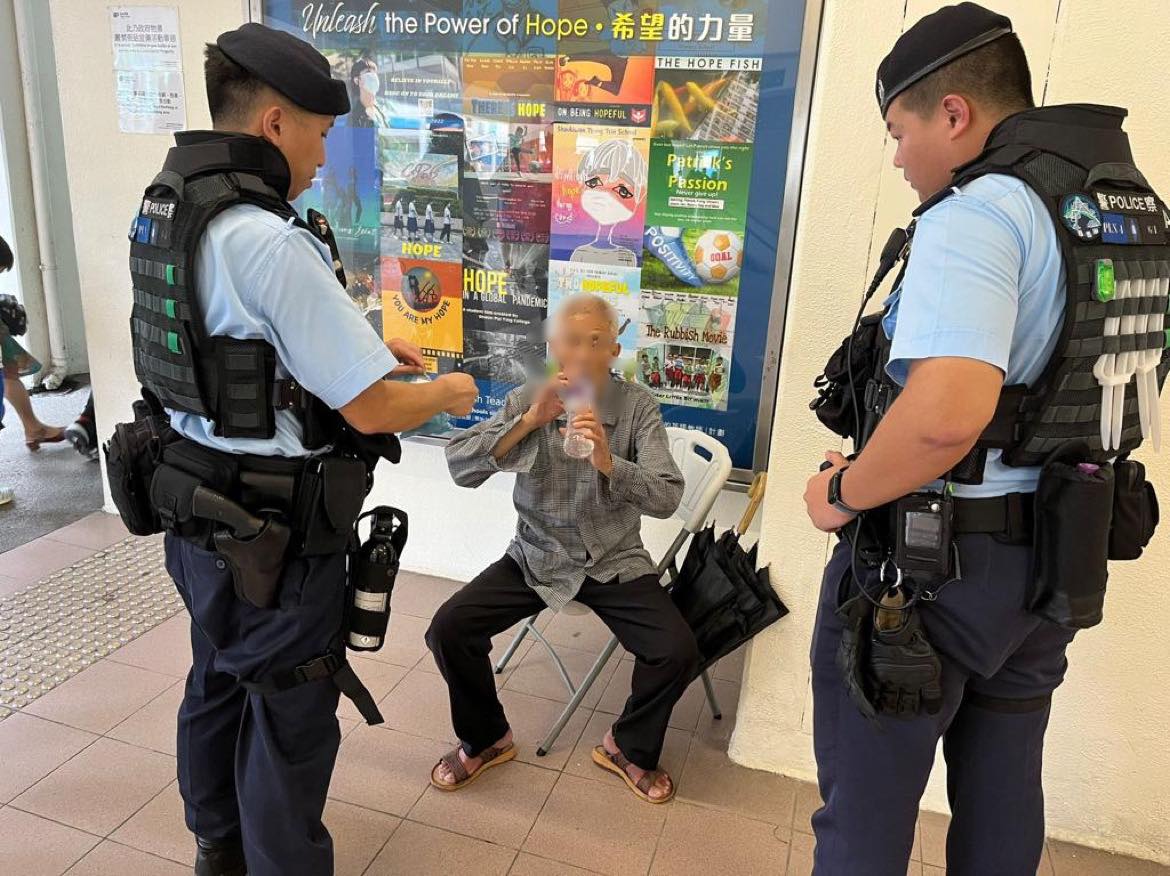 【點新聞報道】警方機動部隊人員今日(2日)於荃灣荃豐中心外作高姿態巡邏期間,發現一名82歲伯伯神情恍惚,試圖拾起地上的麵包進食,人員見狀立即上前制止,將他扶至附近商場內休息並提供水及小食。