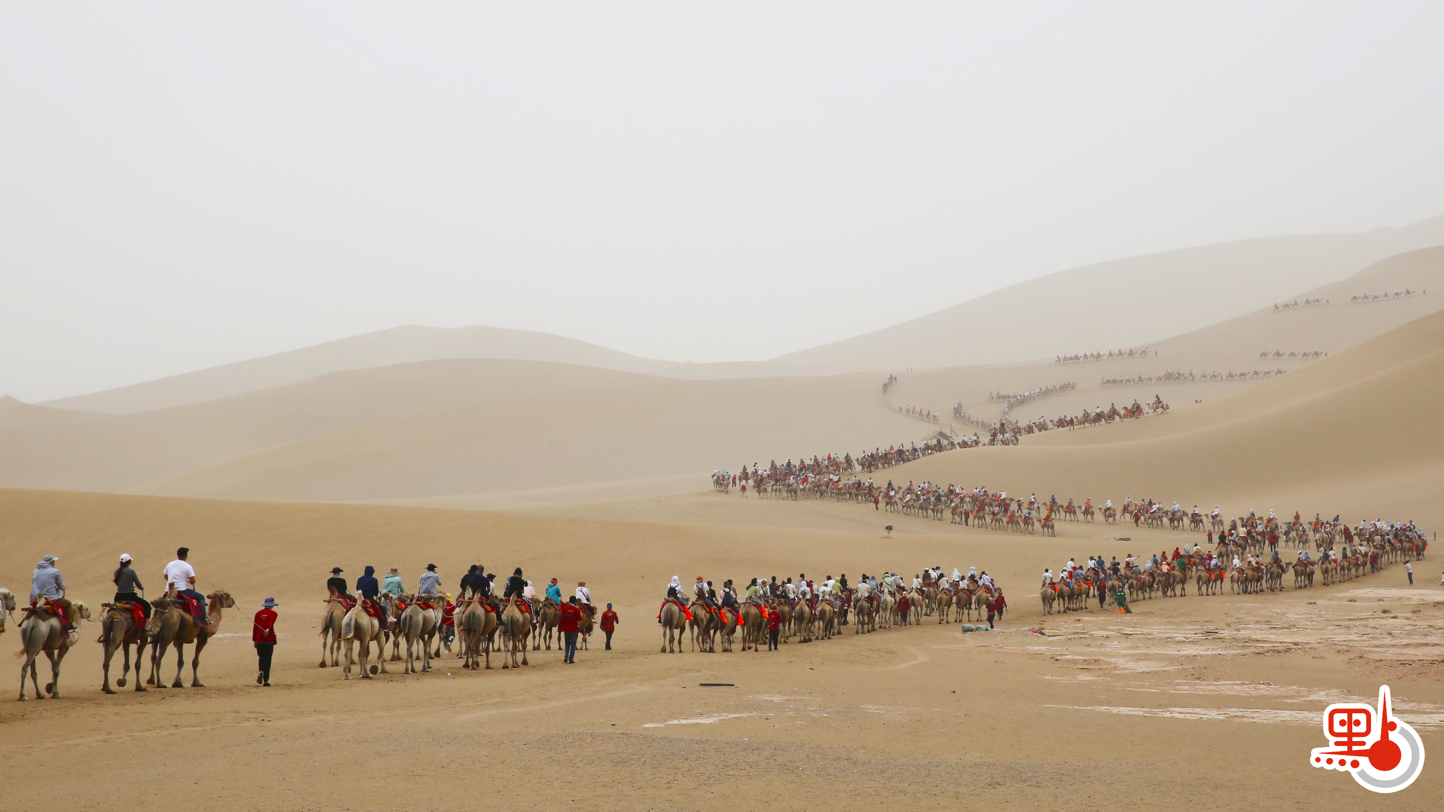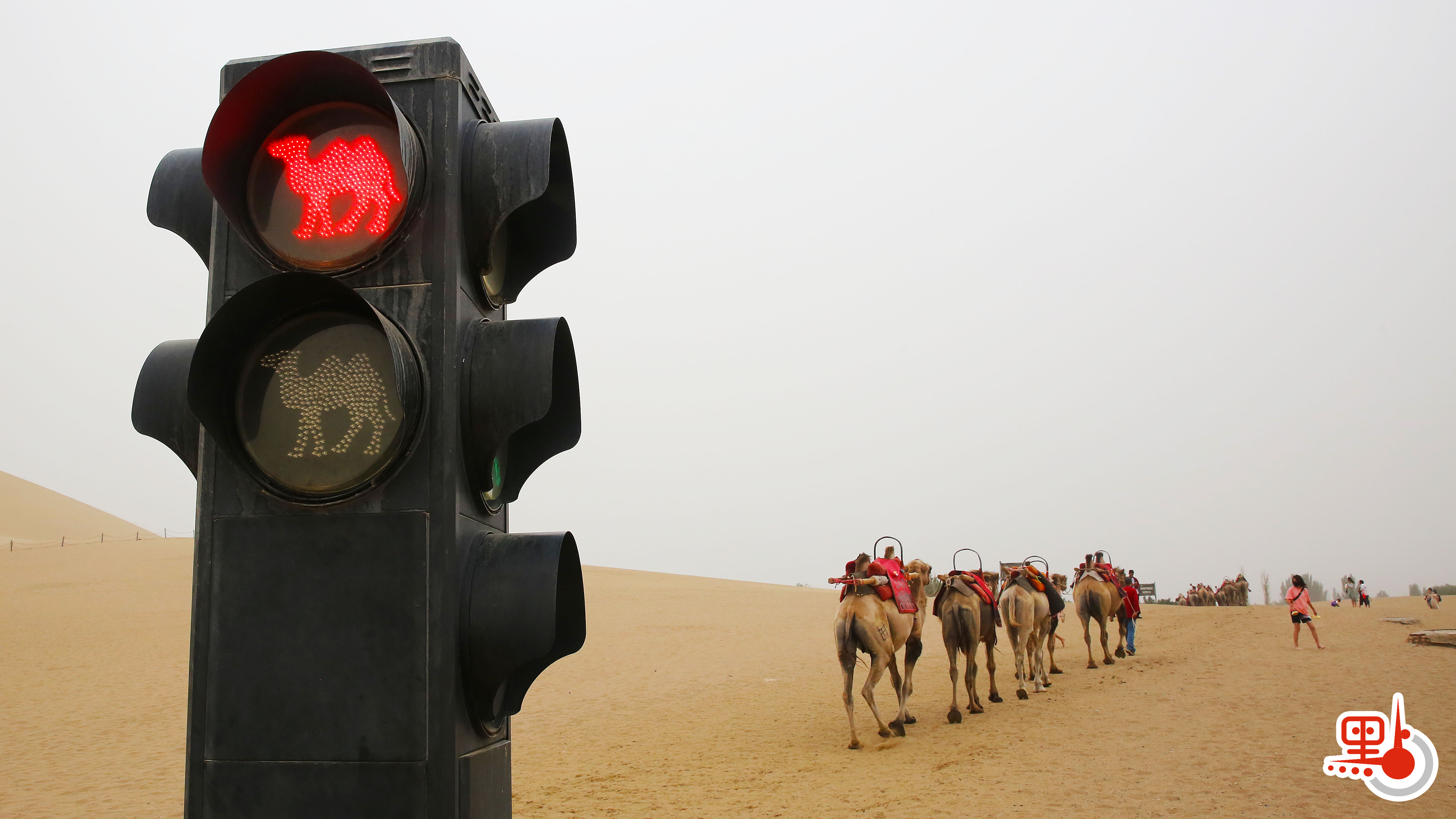 (多圖)「堵駱駝」奇景再現 敦煌「駱駝紅綠燈」成新晉打卡地
