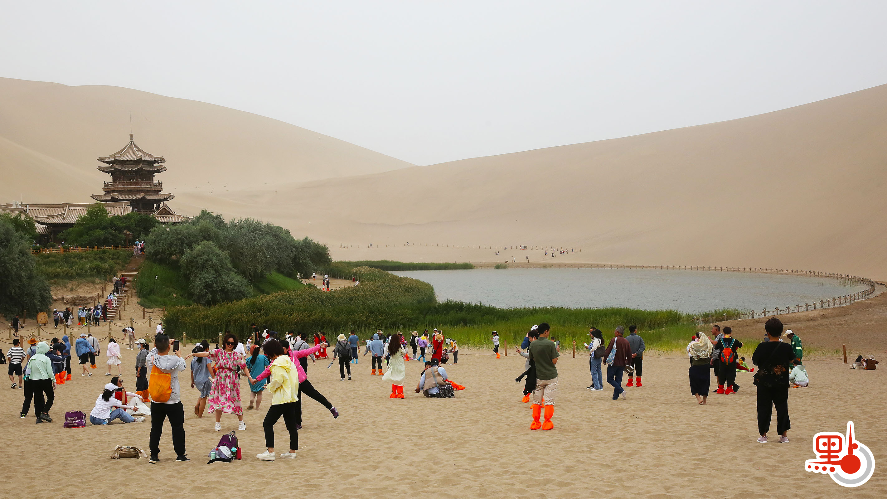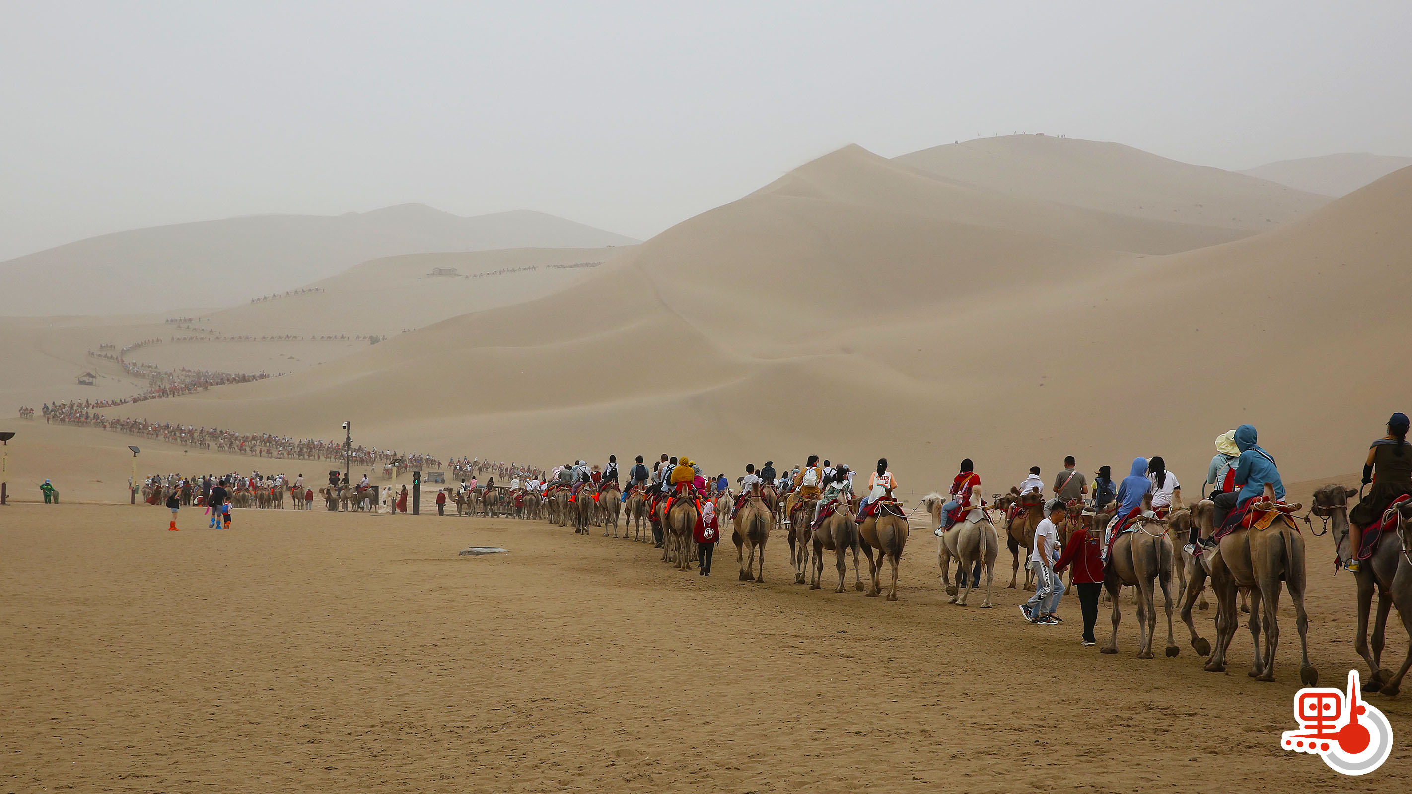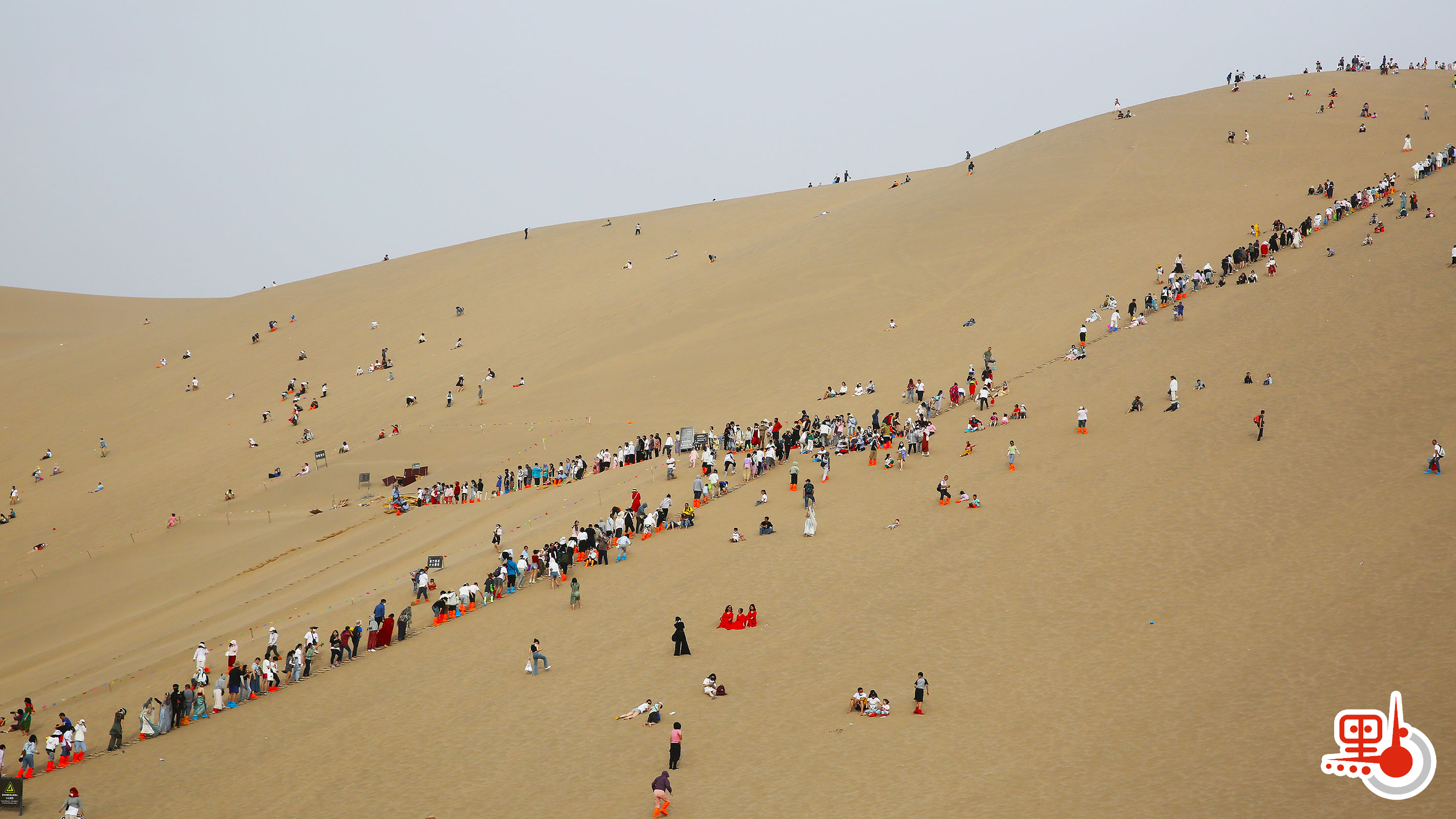 【點新聞報道】隨着暑期到來,甘肅敦煌的旅遊人數不斷攀升。在鳴沙山月牙泉景區,遊客騎着駱駝,沿着鳴沙山腳下穿行,場面十分壯觀。以前只有在小長假期間才會出現的「堵駱駝」現象,這兩天已經成為常態。在行人步道和駱駝通道兩個交叉點設置「駱駝紅綠燈」成為新晉網紅打卡地。
