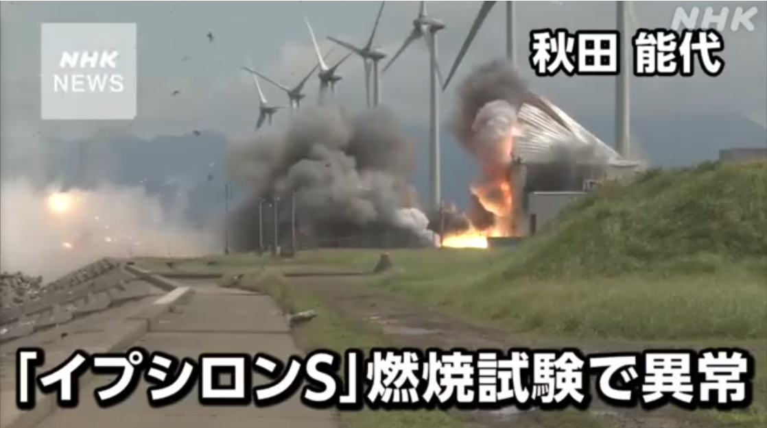 日本廣播協會(NHK)、共同社等報道指,日本宇宙航空研究開發機構(JAXA)於今日上午9時(本港時間8時)在秋田縣的能代火箭試驗場進行「埃普西隆S」火箭第二級發動機燃燒試驗,試驗開始約1分鐘後發生爆炸。NHK播放的電視畫面顯示,試驗現場火焰和碎片四射,濃煙沖天,附近一處設施的屋頂被掀翻。
