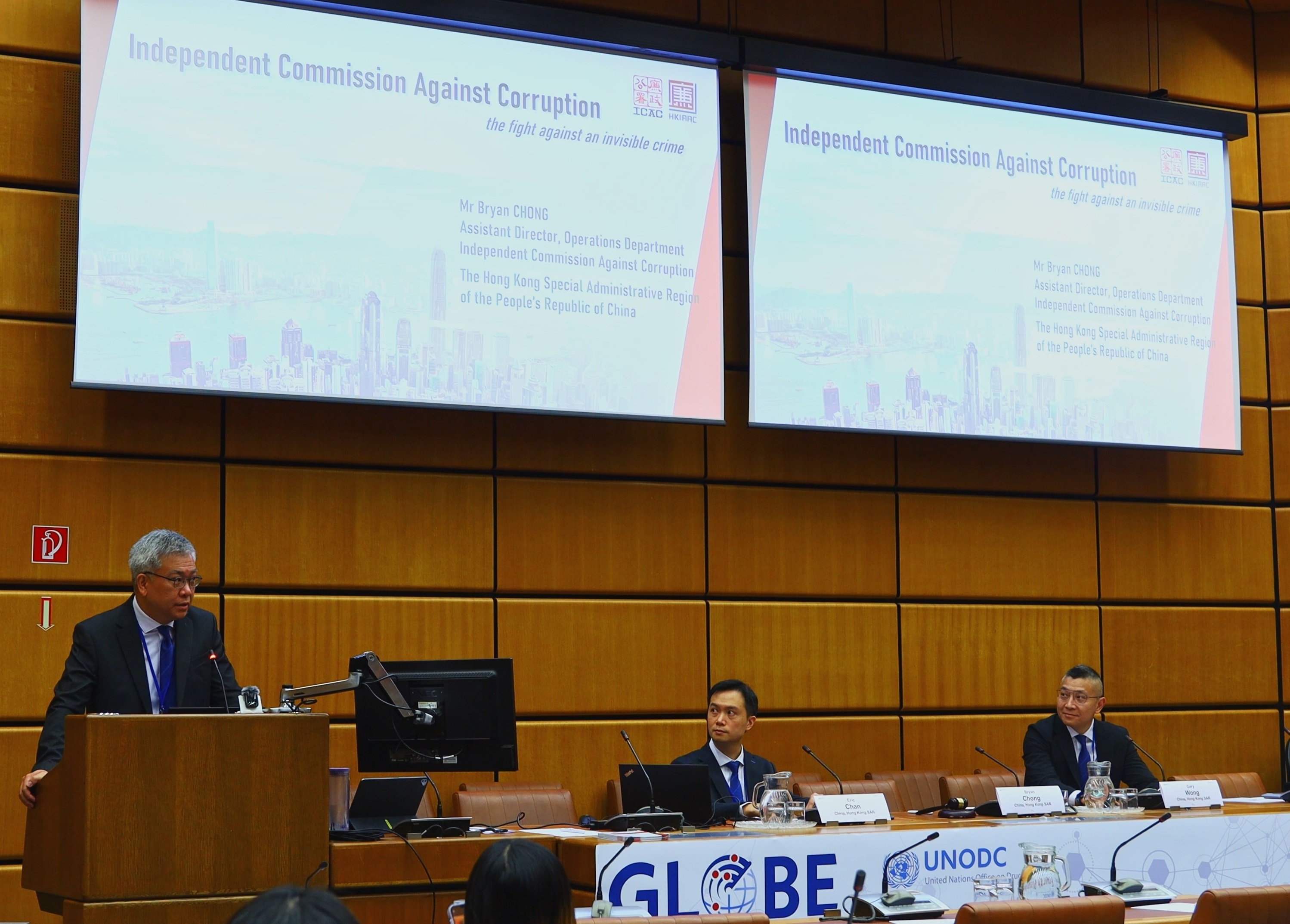 此外,廉政公署首次應聯合國毒品和犯罪問題辦公室(毒罪辦)邀請,在其維也納總部為出席全球反腐敗執法機構業務網絡(GlobE網絡)成員代表舉辦反貪工作坊,分享廉署如何善用科技,提升偵查貪污罪行的效能,獲逾100名代表出席。廉署在會議期間主持兩場合共一天半的反貪工作坊。