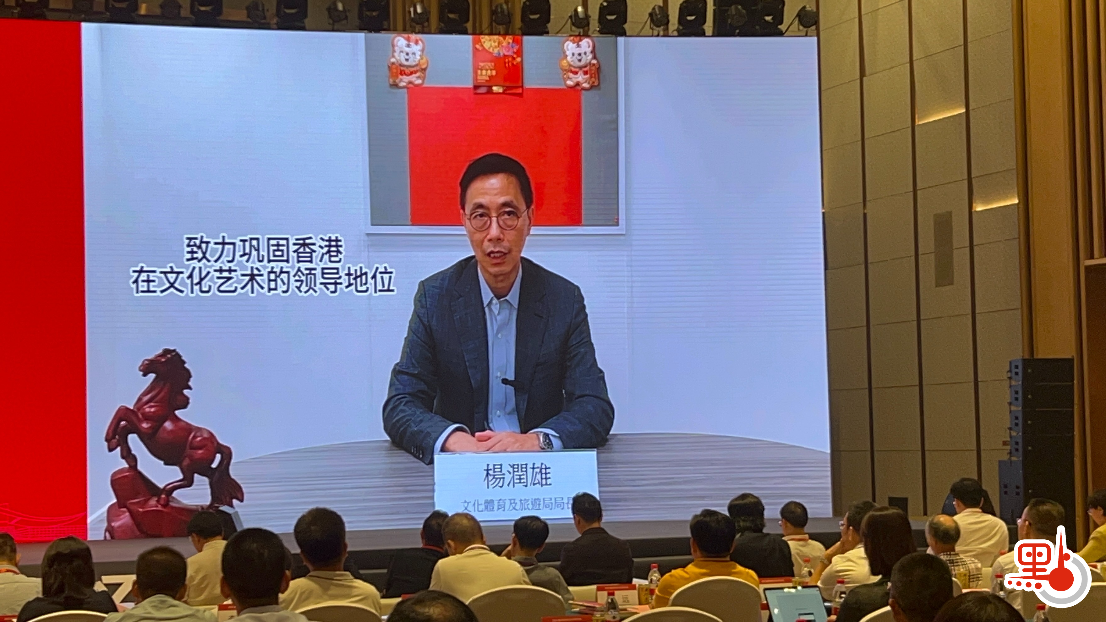 楊潤雄在致辭時表示,粵港澳大灣區的文化藝術內涵既扎根於嶺南文化,但又各有千秋,文化藝術產業創新等方面的交流和合作大有可為。國家在「十四五」規劃綱要中,明確支持香港發展成為中外文化藝術交流中心,特區政府會把握香港中外文化薈萃的獨特優勢,致力鞏固香港在文化藝術的地位。接下來,期待與大灣區內地加強交流與合作,共同推動中國優秀傳統文化傳承、發展和繁榮。
