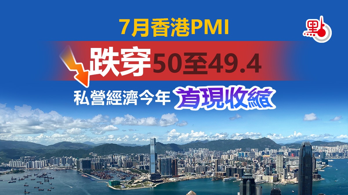 【點新聞報道】標普全球今日(3日)公布,7月香港特區採購經理指數(PMI)經季節調整後,跌穿50.0持平點,顯示私營經濟今年首次縮減經營活動。7月PMI指數由上月50.3降至49.4,反映第三季初景氣輕微下滑。
