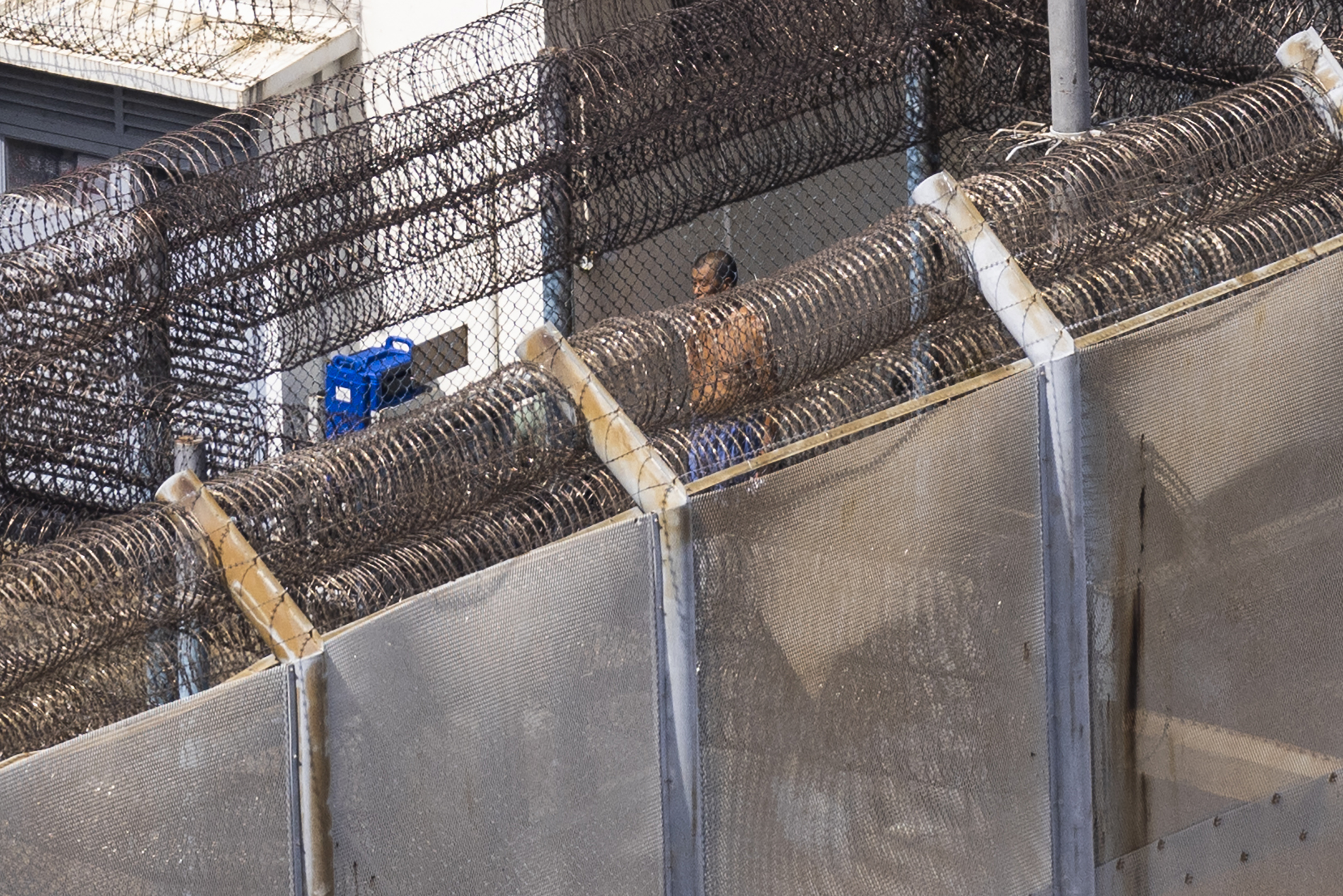 【點新聞報道】官司纏身的亂港黑手、壹傳媒創辦人黎智英,因身涉非法集結及欺詐等多罪,目前正於赤柱監獄服刑。近日,《美聯社》拍得多張黎智英在獄中的照片,其中一張遠距離拍攝到他在囚室外的散步情況。不知道是否近日天氣極端酷熱,加上監獄沒有冷氣,照片可見,黎智英身穿藍色短褲,脫去上衣,半身赤祼「頭耷耷」散步。