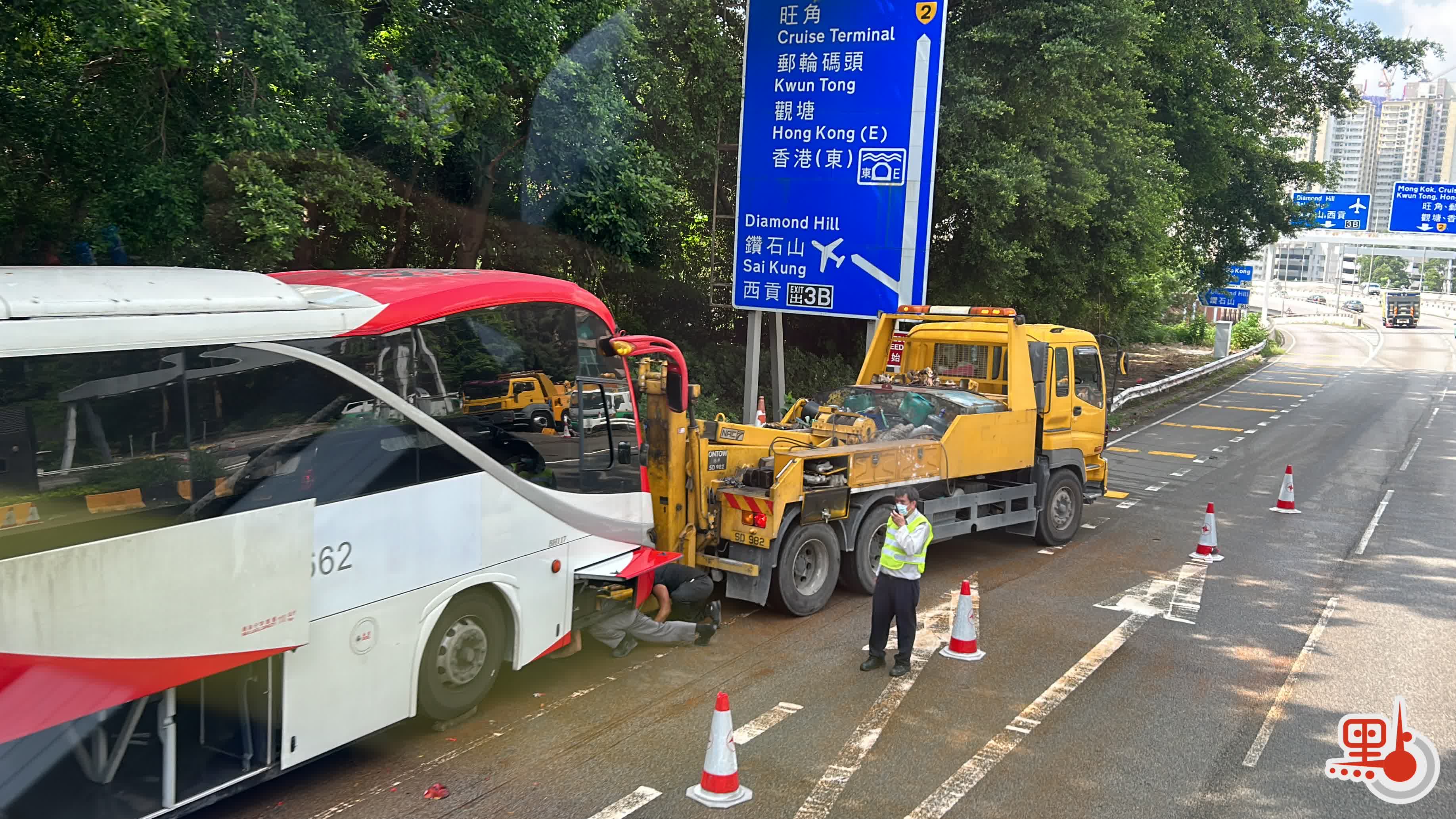 大老山隧道出口旅巴疑車尾自焚無人傷 出九龍全線解封