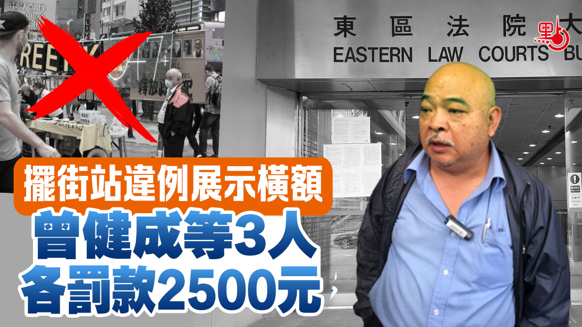 擺街站違例展示橫額 曾健成等3人各罰款2500元