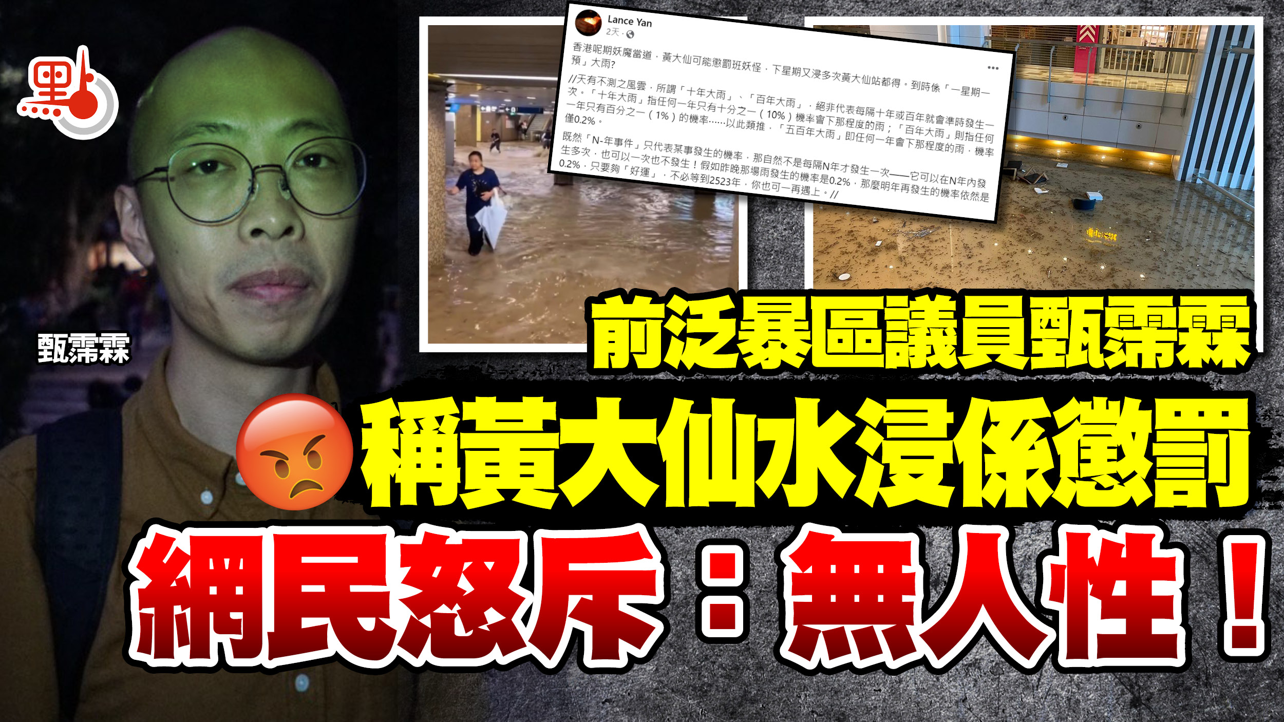 前泛暴區議員甄霈霖稱黃大仙水浸係懲罰 網民怒斥:無人性!