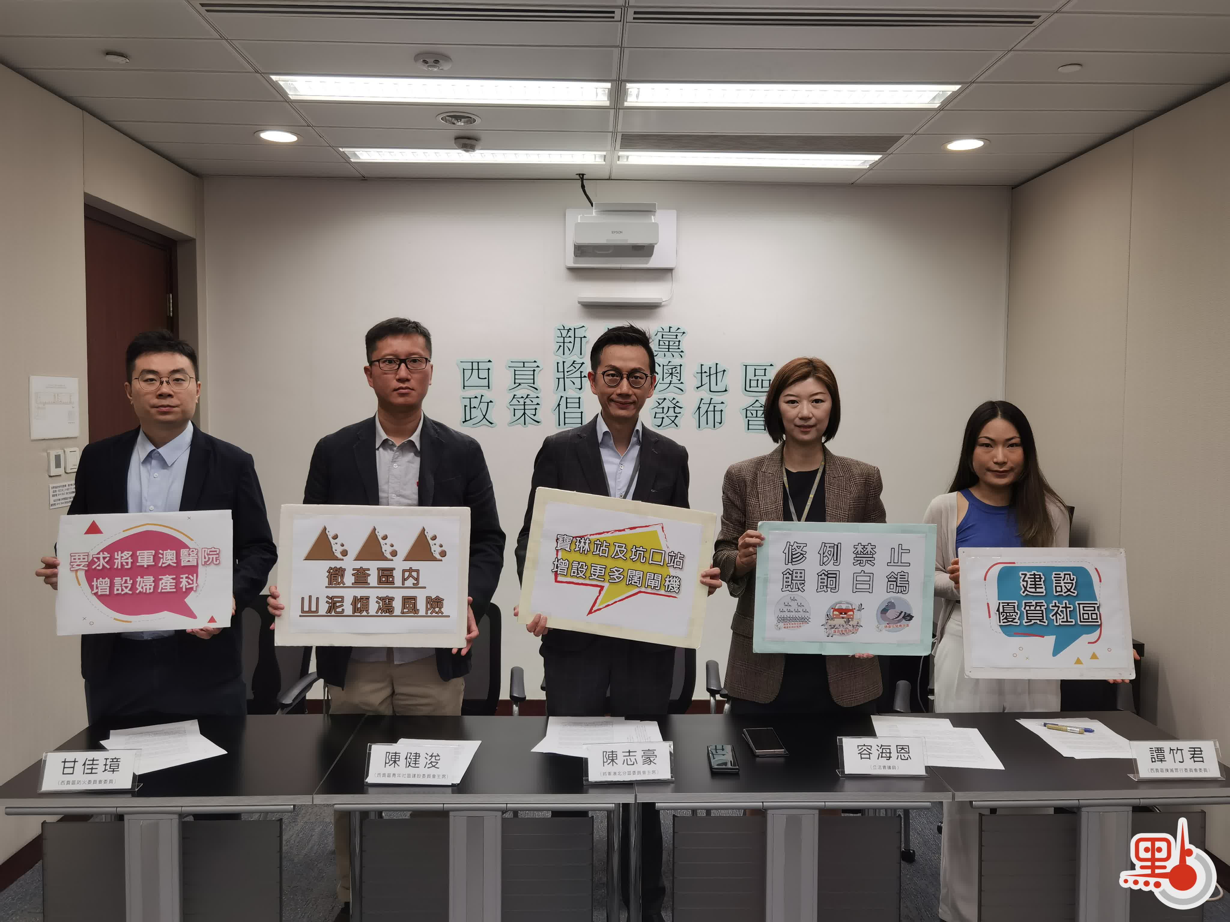 【點新聞報道】新民黨西貢將軍澳社區發展主任團隊近月積極落區,廣泛聽取市民意見,從而構建出「新民黨西貢將軍澳地區政策倡議」,為引起社會更多關注,推動社區完善,一眾社區發展主任今日(20日)舉行記者會公布就西貢將軍澳地區的政策倡議。立法會議員容海恩、西貢青年社區建設委員會主席陳健浚、將軍澳北分區委員會主席陳志豪、西貢區撲滅罪行委員會委員譚竹君、西貢區防火委員會委員甘佳璋出席。