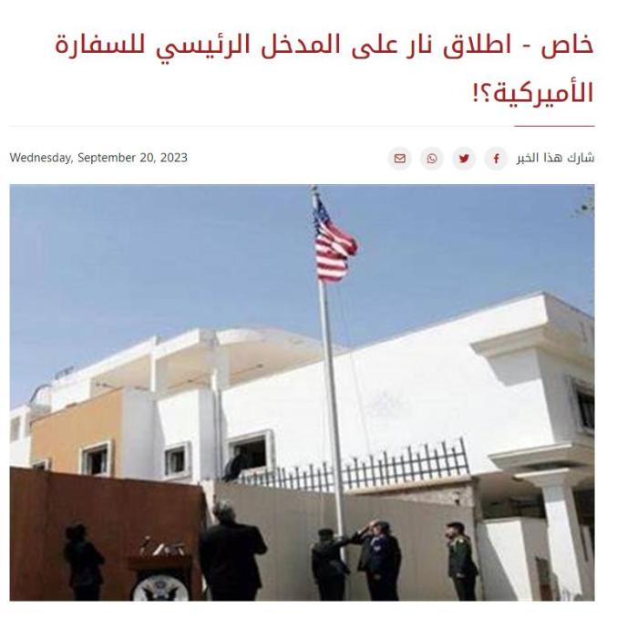 另據黎巴嫩媒體Al-Kalima Online報道,20日晚,一輛黑色汽車從美國駐黎巴嫩大使館前駛過,車內人員向大使館正門開火。該媒體還稱,美國大使館的一輛軍車被擊中。隨後,使館附近採取了安全措施,道路被封鎖。
