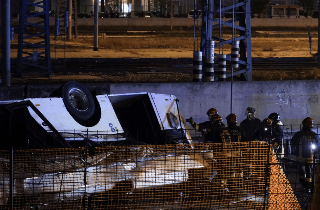 【點新聞報道】昨晚(3日)7時45分左右,意大利北部、接近旅遊勝地威尼斯的梅斯特雷(Mestre)地區,有一輛載着遊客前往露營營地的巴士從天橋翻落地面,隨後起火,造成至少21人死亡,18人重傷。遇難者中包括2名兒童。總理梅洛尼(Giorgia Meloni)為死難者致哀,表示政府與死傷者的親友同在。