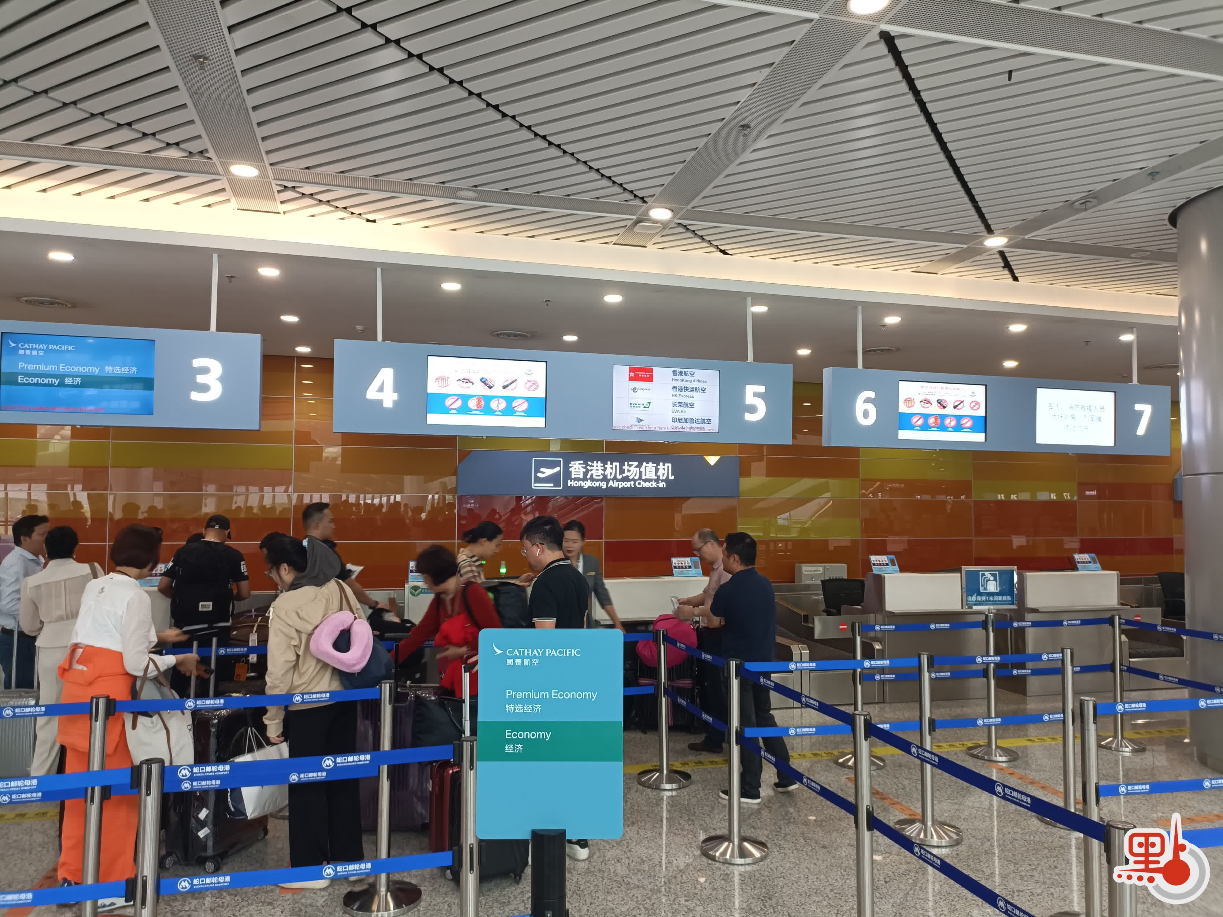 在港口服務大樓可見,不少旅客推着行李箱,前來櫃檯辦理「預登記」服務。據現場工作人員介紹,2003年9月,作為粵港兩地政府《關於建立更緊密經貿關係的安排》合作的首個創新項目,香港國際機場預辦理登記服務正式啟用。現時旅客只需在登船前,即可在蛇口郵輪母港完成香港出發至目的地國家行程中的所有航段登記手續。而從這裏到香港國際機場,亦只需要短短30分鐘左右即可到達候機大樓,方便快捷。
