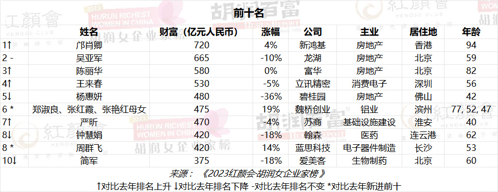 胡潤女企業家榜|新地郭老太鄺肖卿首登第一 楊惠妍列第五