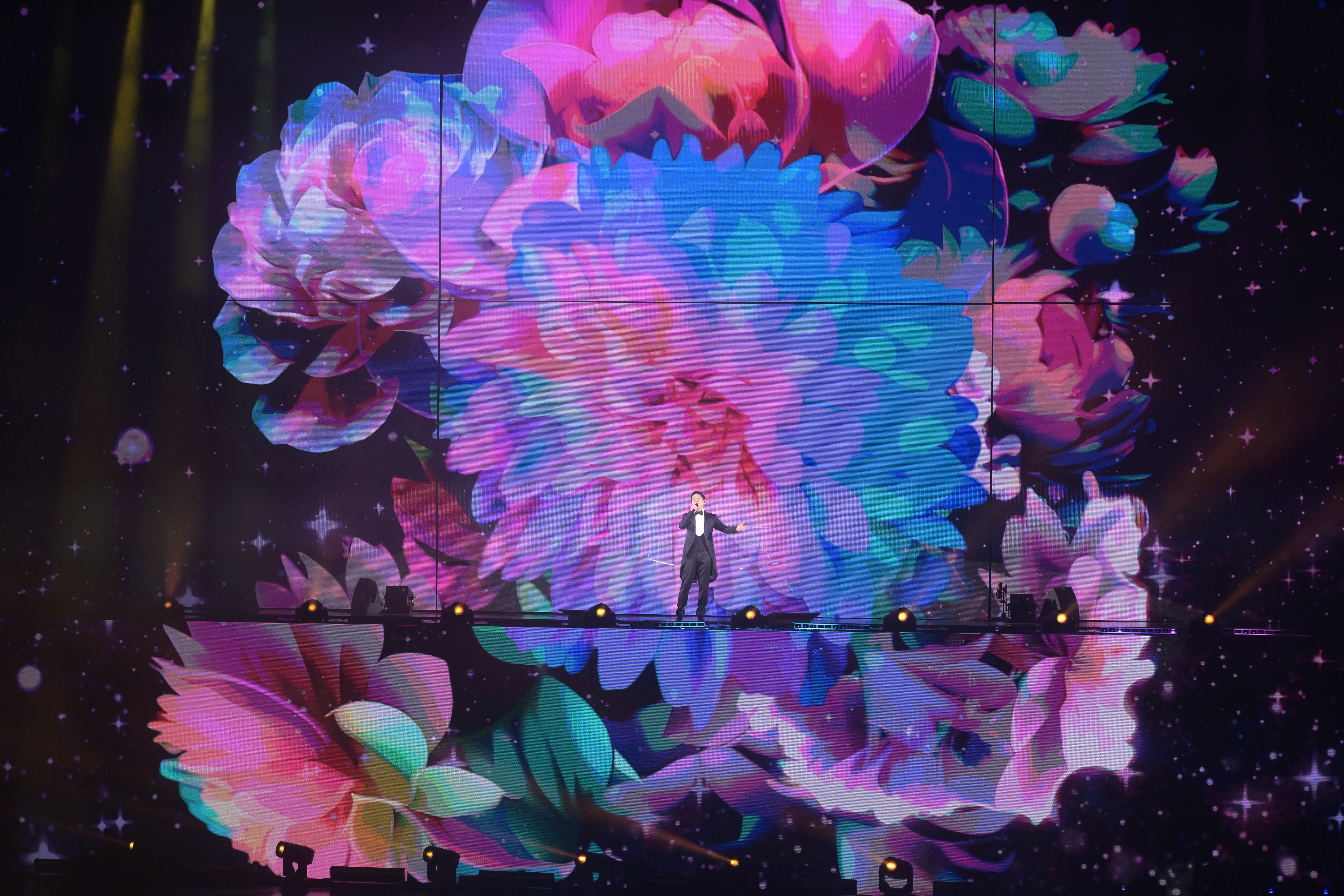 緊接唱出《情》後,Leon跟觀眾打招呼說:「大家好,我哋又喺香港見面,其實一直冇走過。今次舞台改動過好多次,因為要符合規格,整吓整吓我就上咗嚟上面。但大家工餘時間都會成日耷低頭睇手機,而家可以昂高頭向上望吓,今晚返去會瞓得好好。」