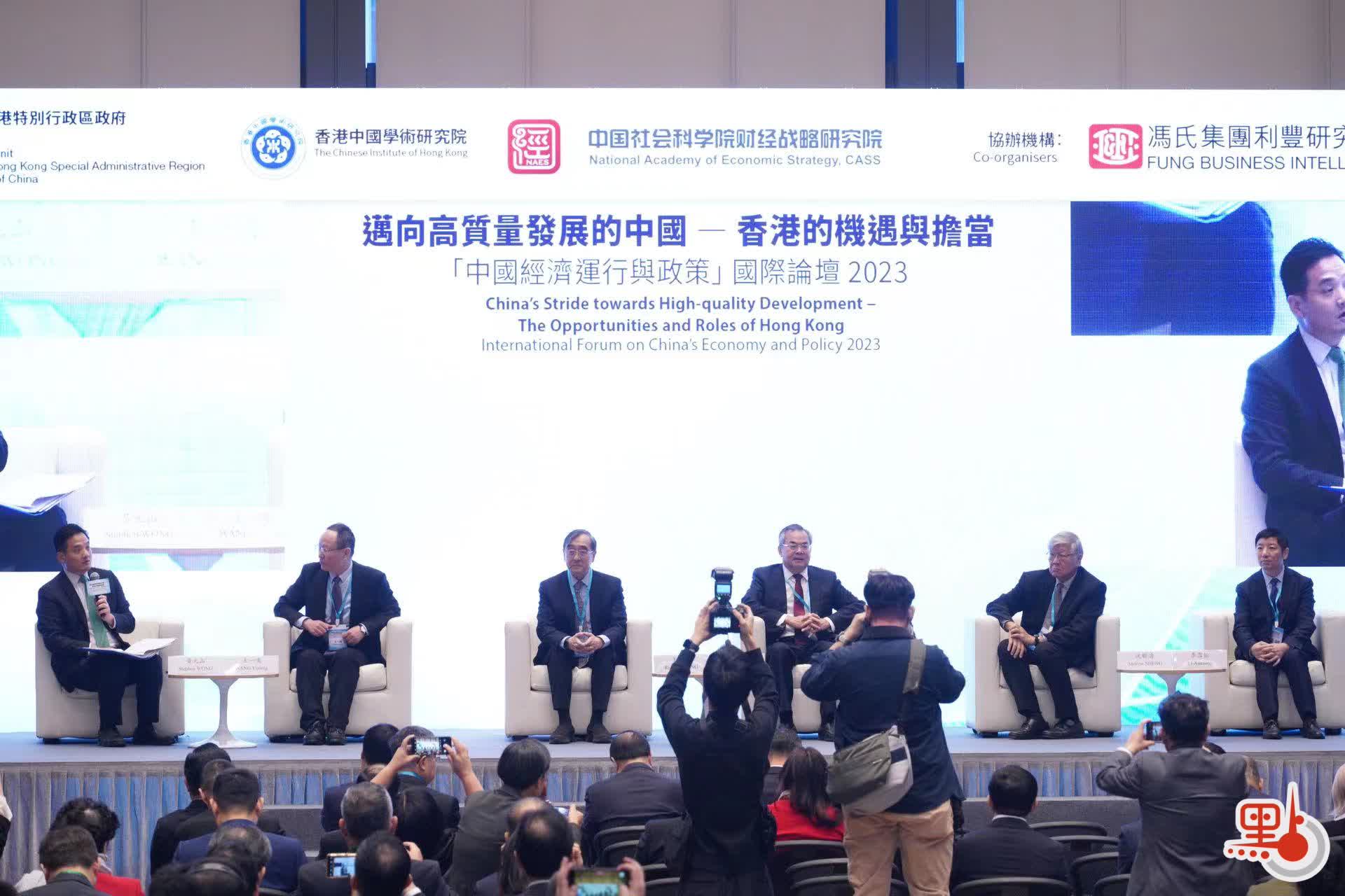 【點新聞報道】今日(11月15日),邁向高質量發展的中國——香港的機遇與擔當「中國經濟運行與政策」國際論壇2023在特區政府總部舉行。論壇匯聚內地、海外和本港20多位專家學者、商界領袖和政府官員作演講,超過400人出席,深入探討在國家持續邁向高質量發展的趨勢下香港未來的機遇和應予擔當的角色,並為國家和香港的經濟發展建言獻策。