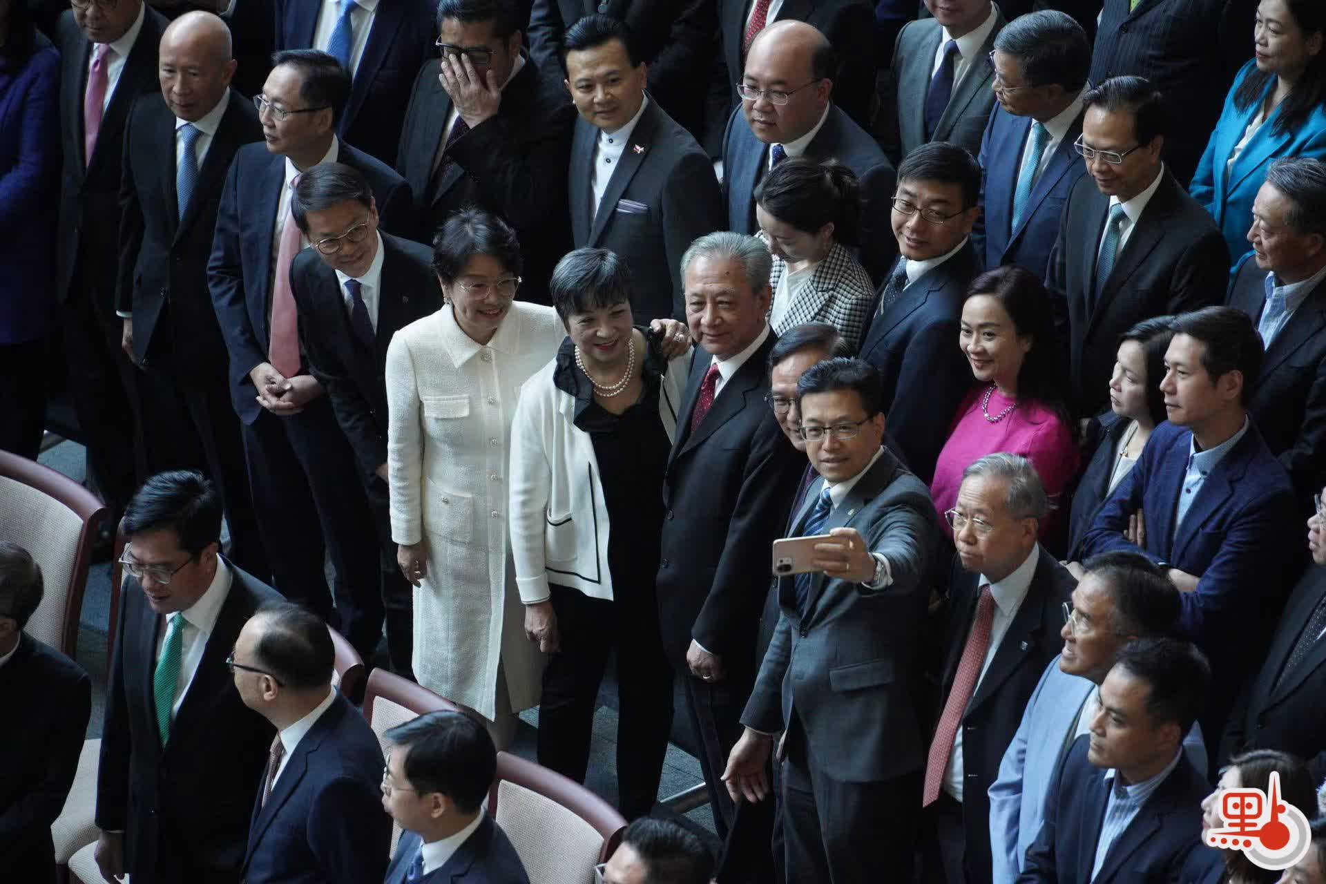 【點新聞報道】立法會議員今日(17日)下午在立法會綜合大樓(綜合大樓)宴會廳,與行政長官李家超、行政會議成員及政府高級官員進行午宴。午宴開始前,李家超和立法會議員在綜合大樓地下大堂拍攝合照。