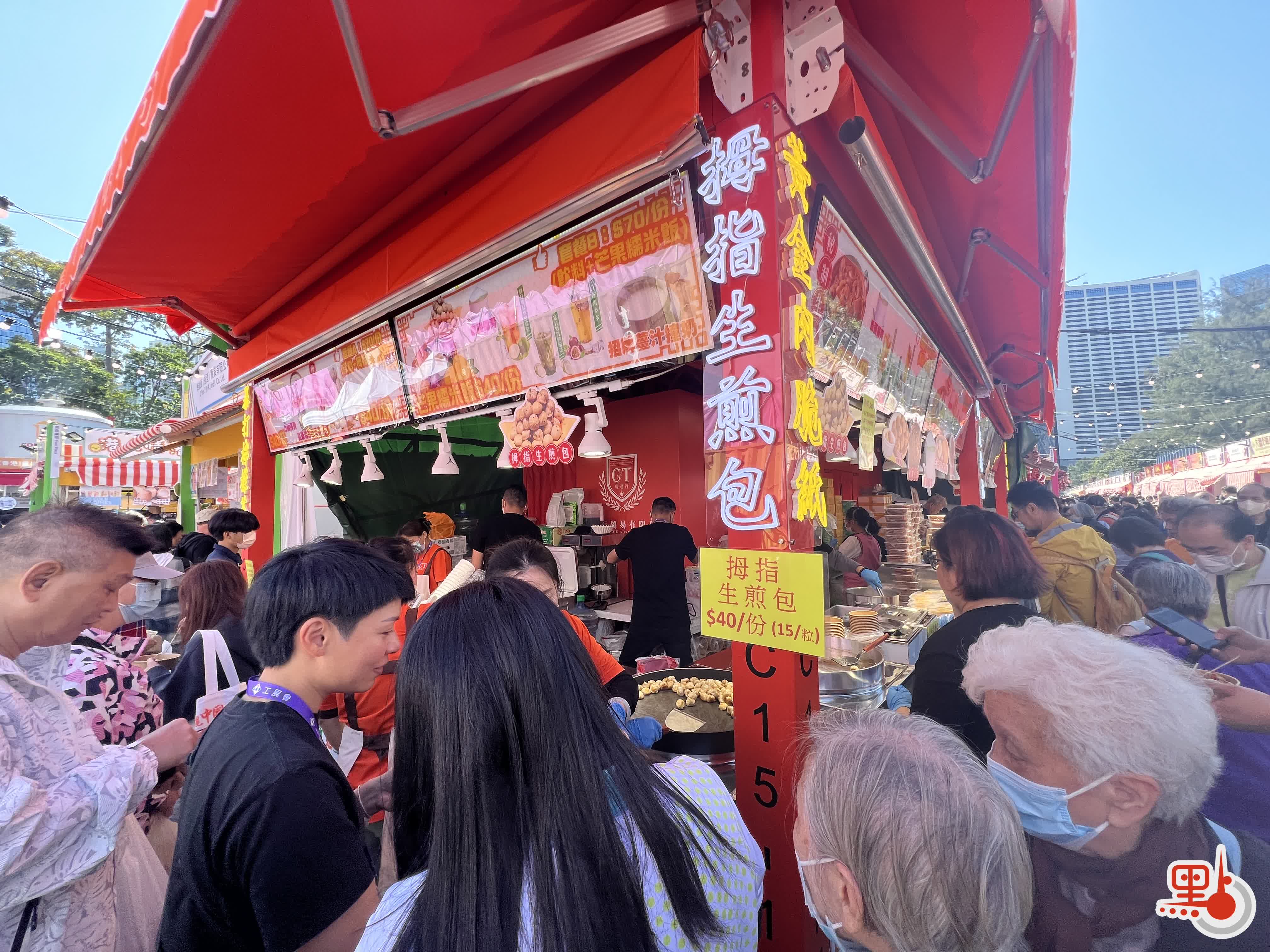 今年工展會一大亮點是恢復熟食區,有燒龍蝦、蛋撻、煎餅煎包等美食,市民可以即叫即製。點新聞記者今日來到工展會,見到熟食區的40元15粒的「拇指生煎包」、50元4只的「泰國大頭蝦」等小食十分受大家喜愛,不少市民在攤位排隊購買後即刻在指定位置就餐,品嘗新鮮出爐的食物。