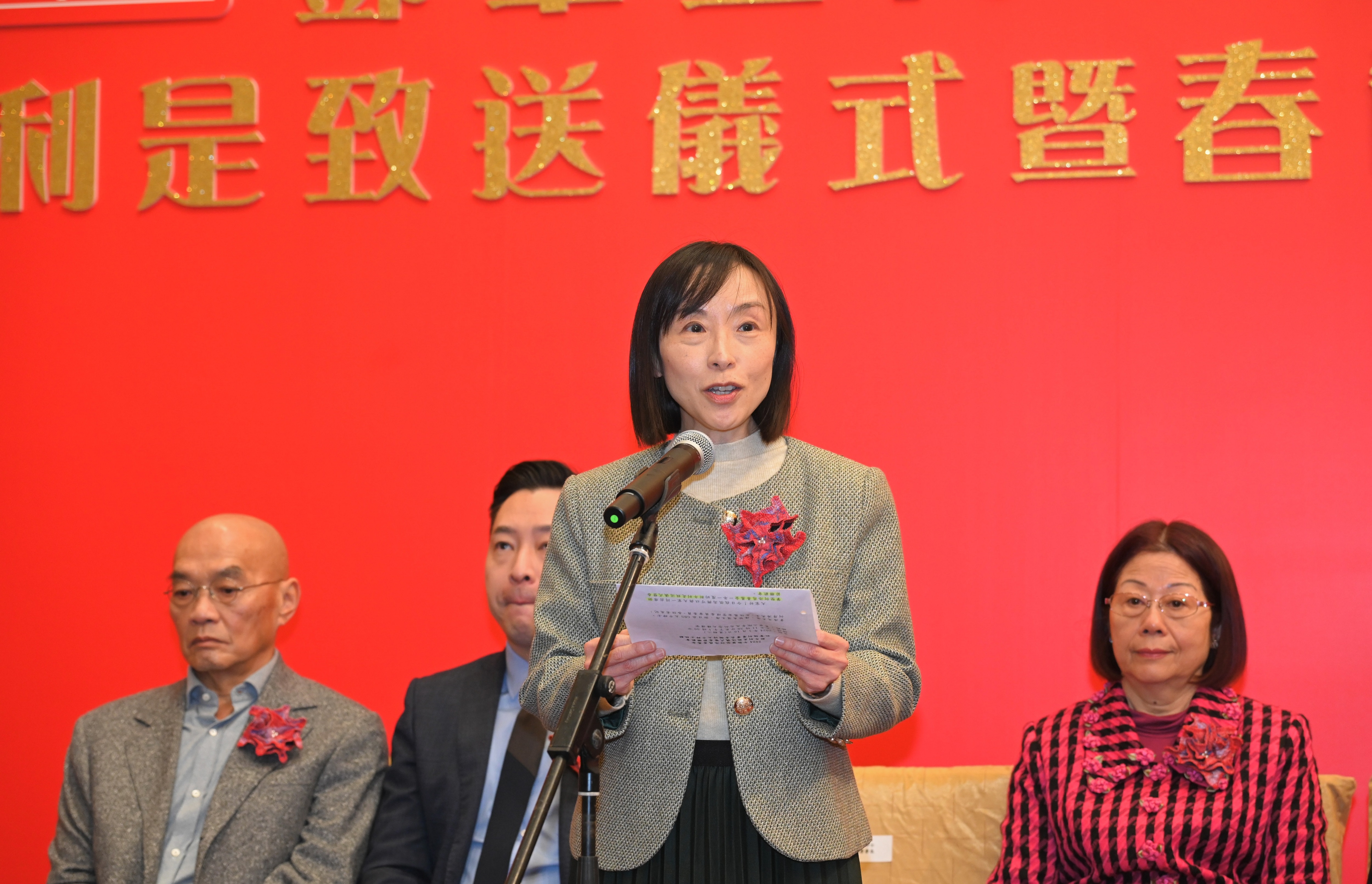 她指出,鄧何基金秉承兩位創辦人的仁愛精神,除了致力救急扶危外,更推崇華人社會尊敬長者的傳統美德,延續敬老扶貧的優良傳統。她衷心向基金表達謝意。今日約40名長者出席聯歡會。鄧何基金為他們安排了精彩的表演節目,以及豐富而健康的午宴,祝願他們身心康泰、龍馬精神。