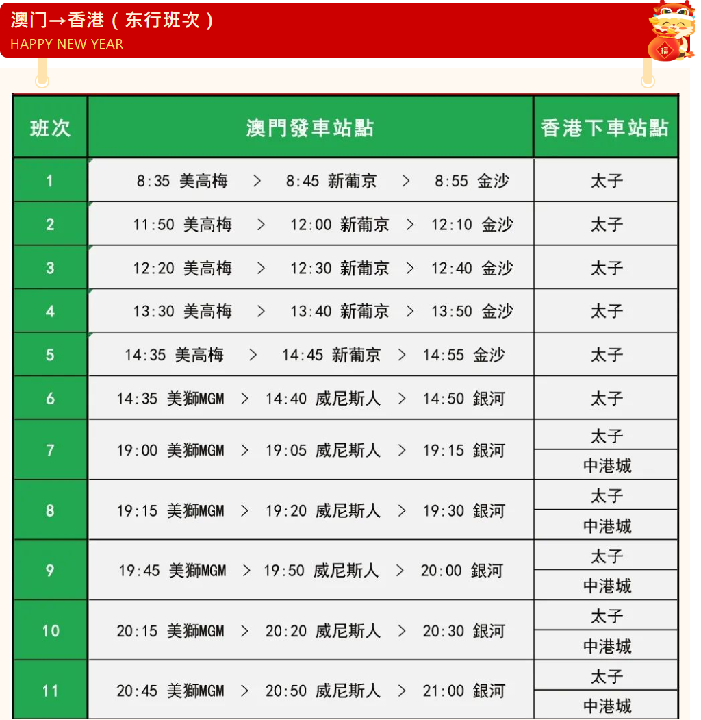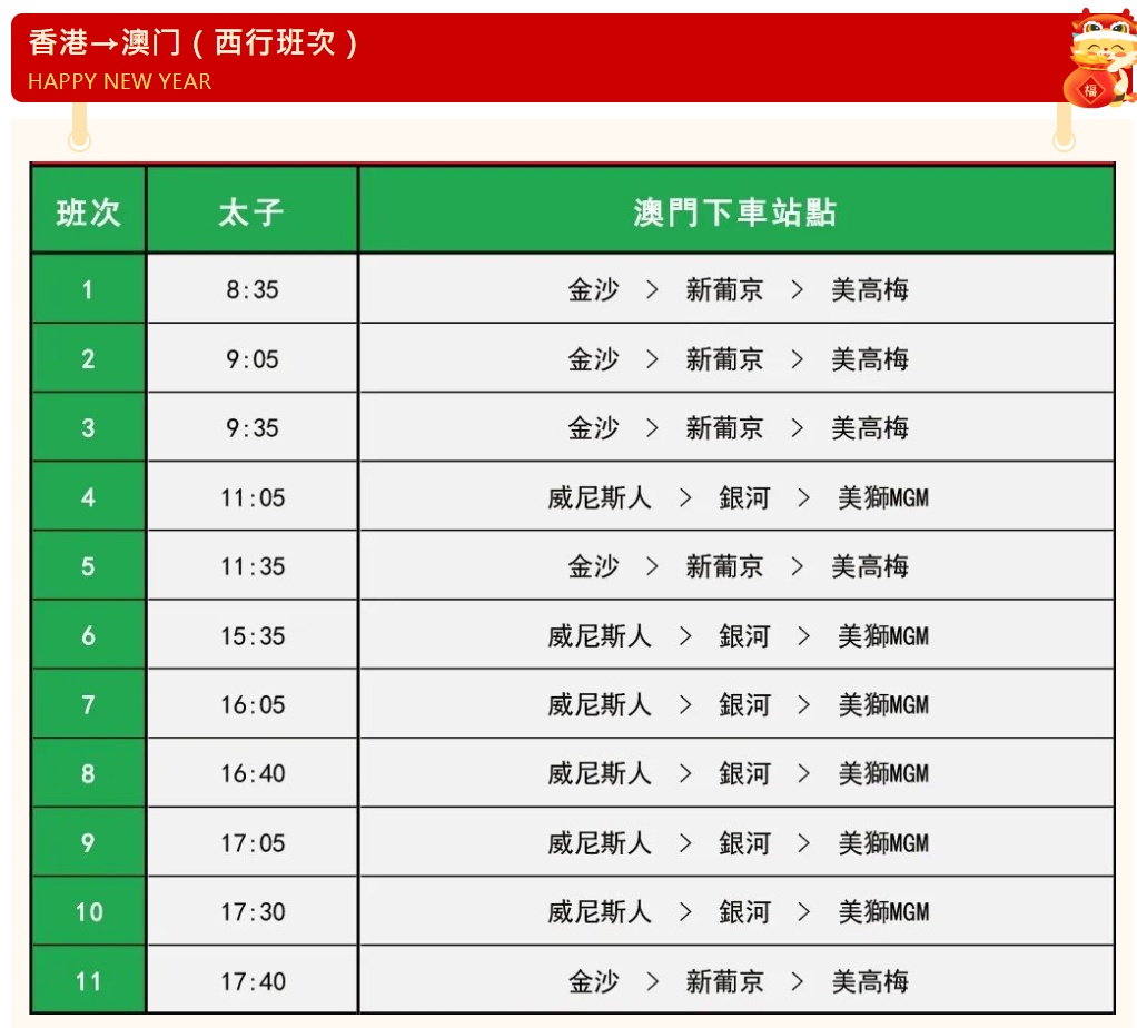 春節出行早打算!「港澳快線」春節班次開始預售