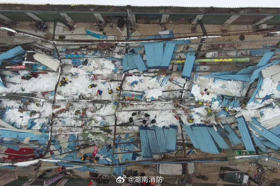 (有片)積雪再釀禍!湖南一菜市場垮塌 有人被困