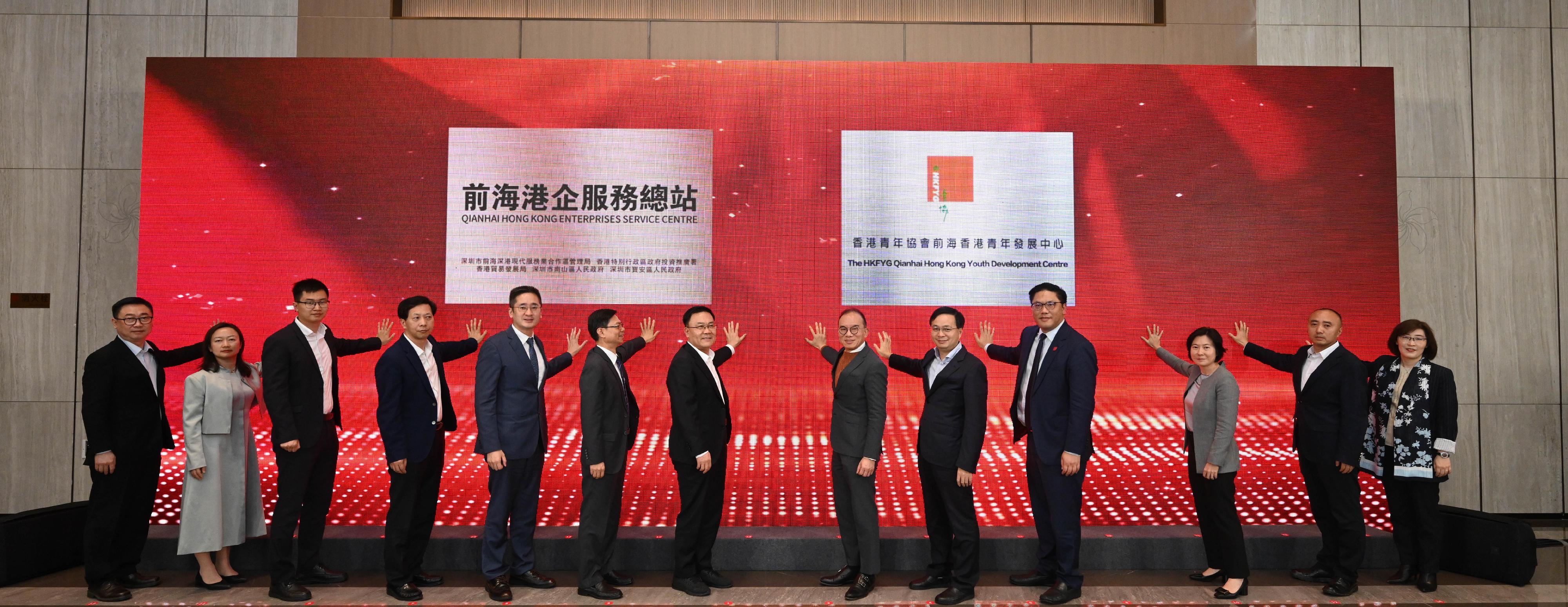 港深雙方亦見證了「前海港企服務總站」項目,以及由前海管理局與香港青年協會合作在前海深港青年夢工場設立的「前海香港青年發展中心」項目揭牌儀式。