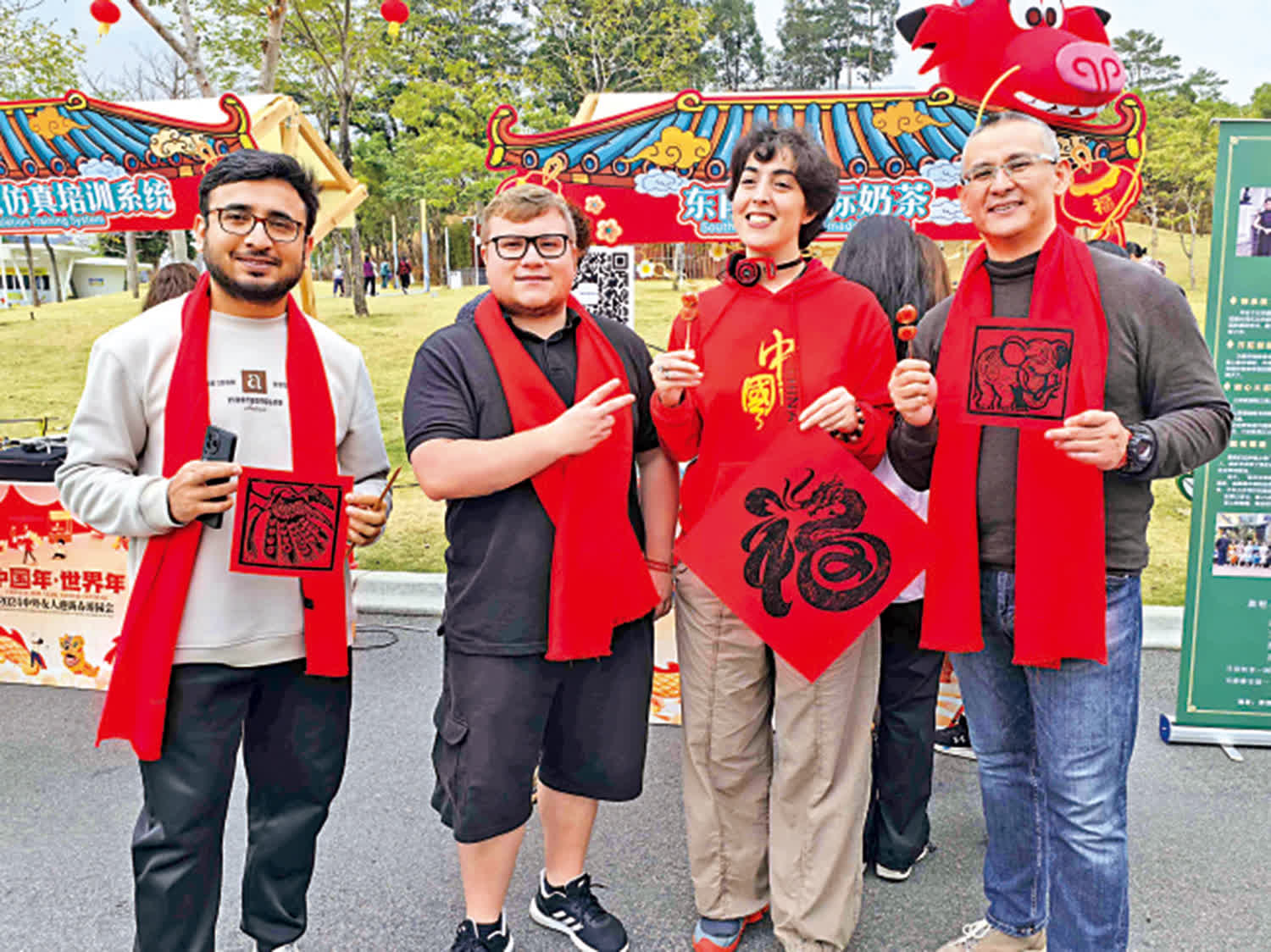 來自巴基斯坦的Ali帶着兒子一起參加深圳的各式新春活動,他說,專門給兒子買了紅色的上衣,帶他體驗了版畫、燈籠的製作。「很喜歡春節,因為這是一個非常開心的時刻,你可以看到所有人都在享受傳統的節日,享受中國傳統音樂、傳統食物,體驗傳統藝術,就像是一種對中華文化的慶祝和對幾千年傳統文化的傳承。」他說。