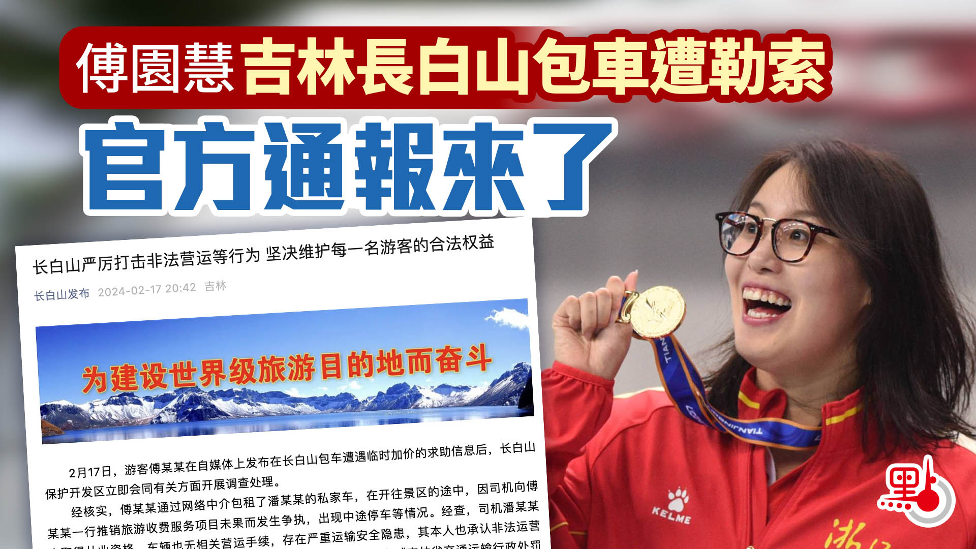 傅園慧吉林長白山包車遭勒索 官方通報來了