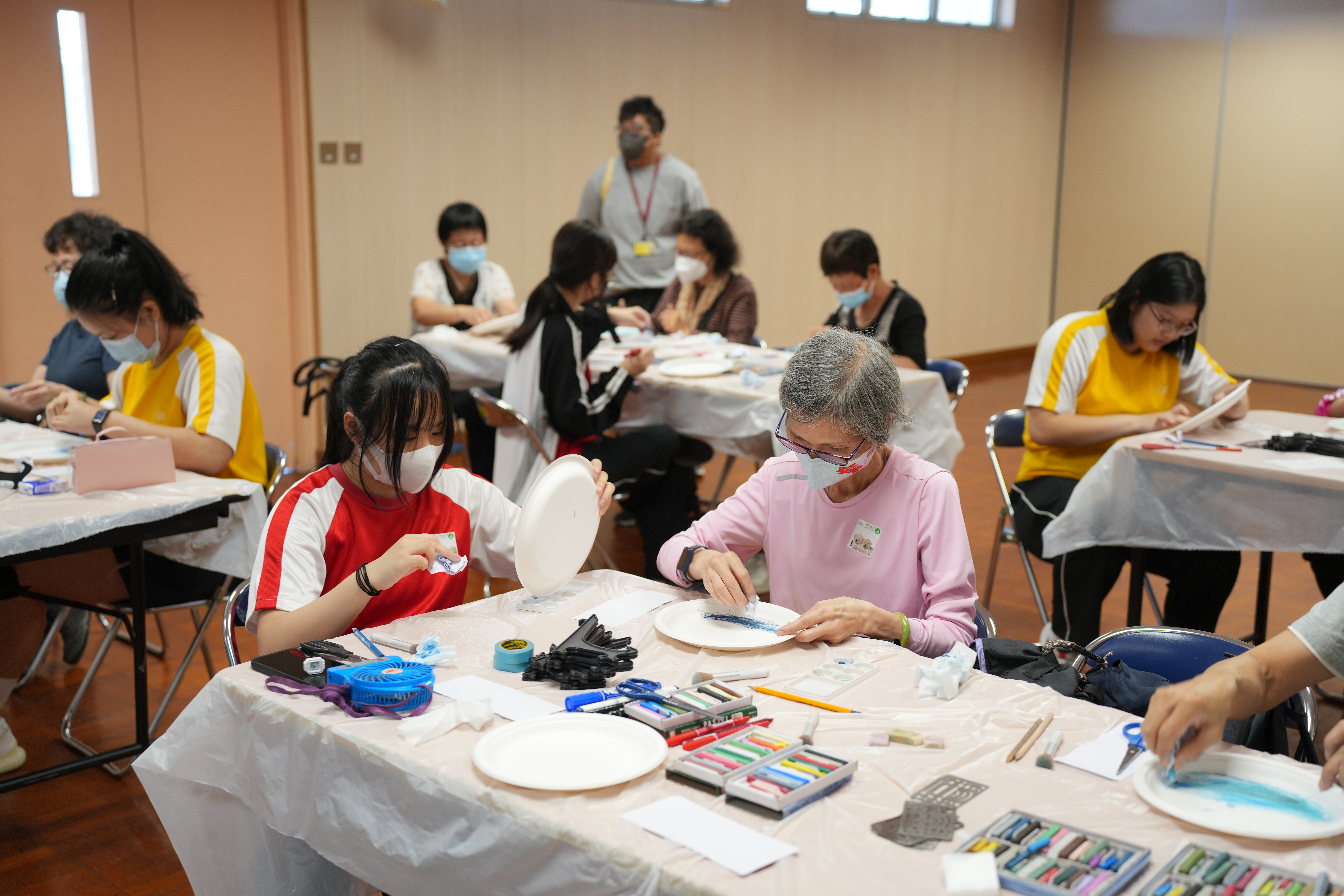該校學生擔任義工,全程參與,真誠陪伴,積極協助,讓長者順利完成各項活動。在過程中,學生與長者之間存有不同的良性互動,彼此閒話家常,拉近距離,讓校園成為一處「長幼共融」的港灣。