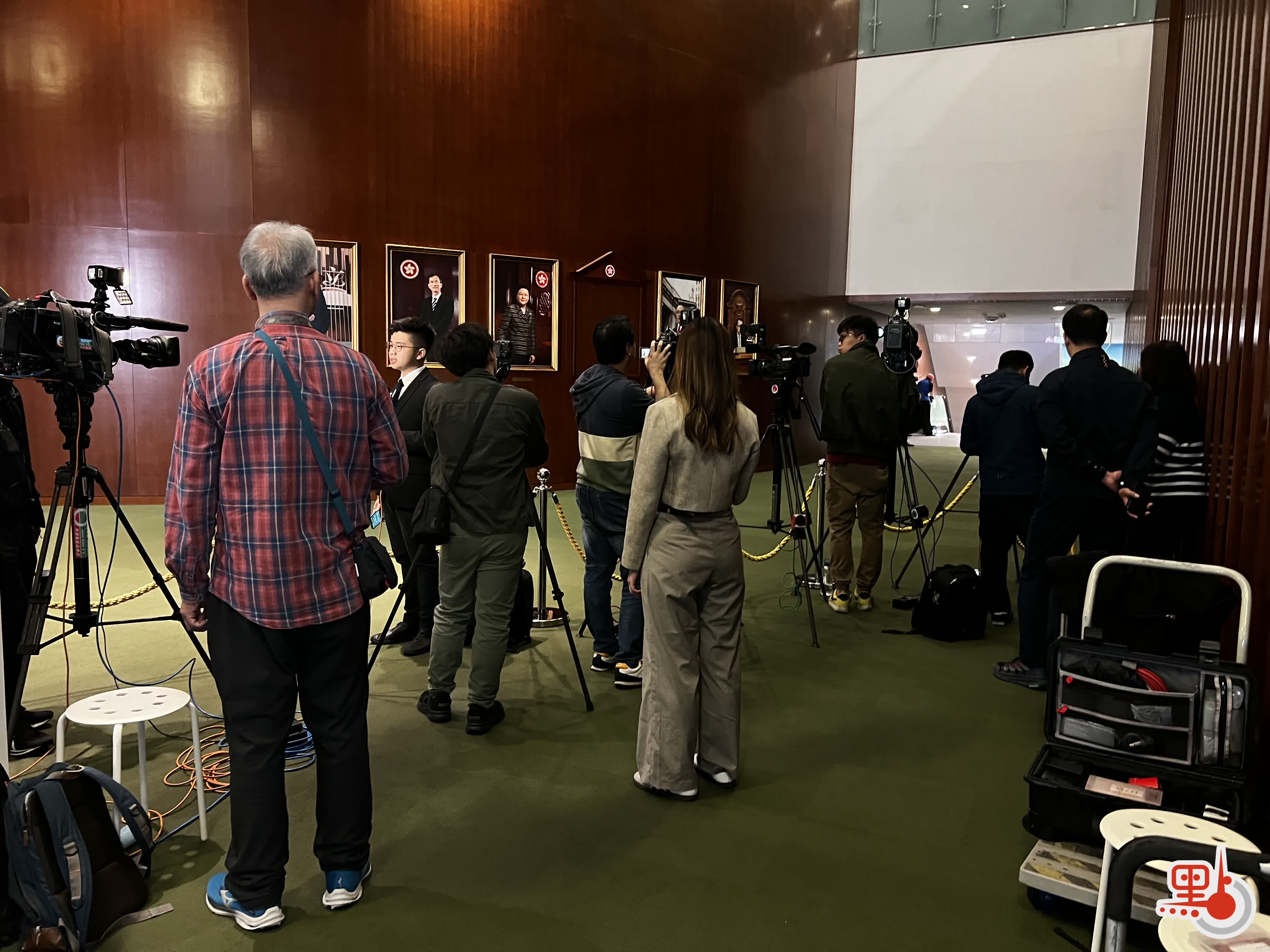 各家媒體記者自不必說,一早來到立法會,架起了攝像裝備。記者室也準備了三明治,方便沒時間買早餐的人士。
